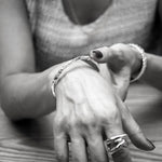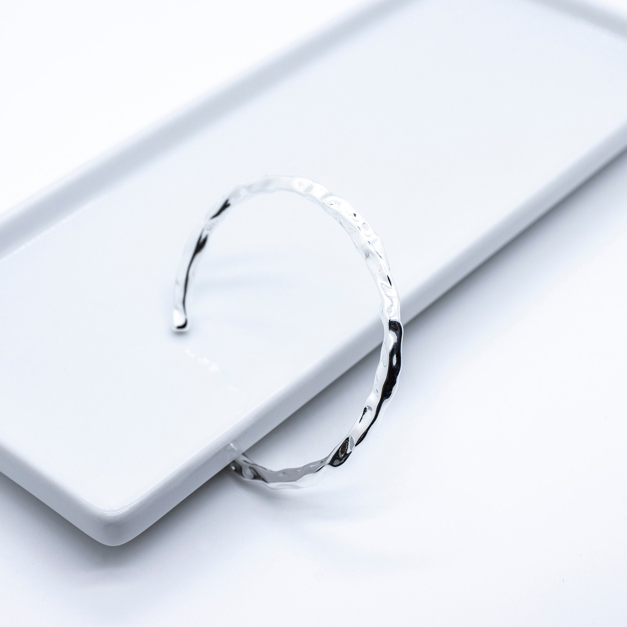 Der 'SALIM' 925 Silber Armreif ist ein elegantes Schmuckstück mit schmalem Look und einer ungewöhnlichen Struktur. Seine organisch anmutende Oberfläche mit natürlichen Einbuchtungen und Erhebungen ist der Blickfang, der jedem Outfit eine edle Note verleiht. Perfekt für alle, die ein stilvolles Accessoire mit subtilem Charme suchen.
