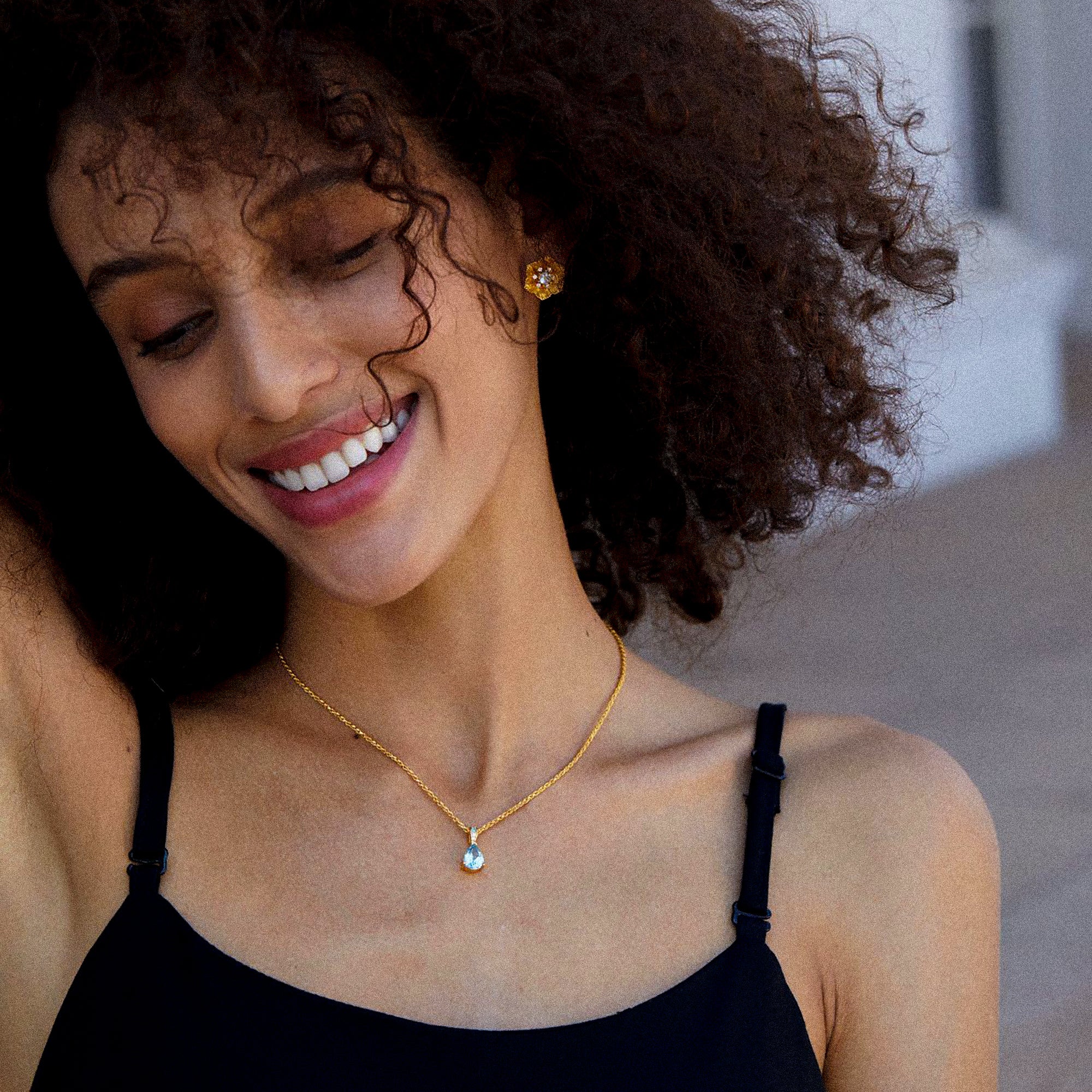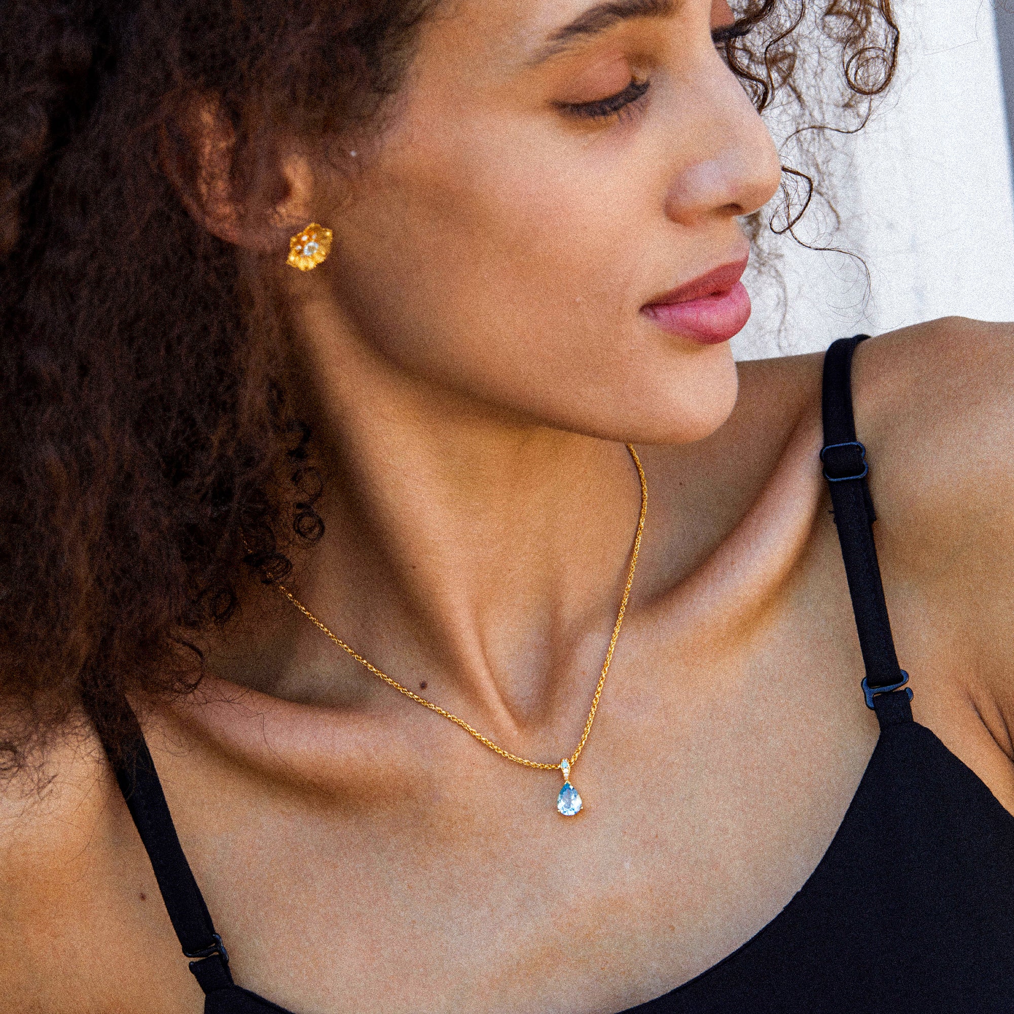 NOLLA Goldkette mit Topas Tropfen Anhänger aus vergoldetem 925 Silber – Produktbild