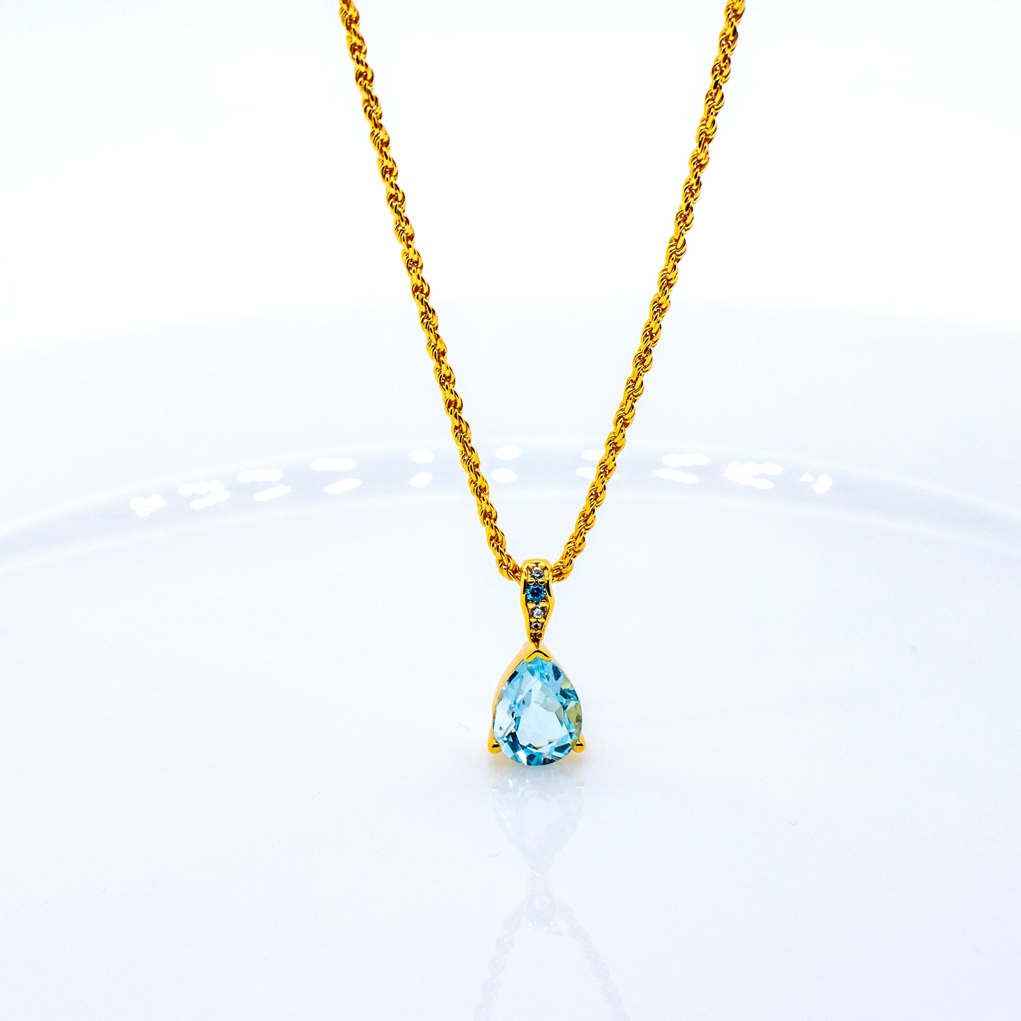 NOLLA Halskette getragen ‑ blau Topas Tropfen in vergoldetem Silber