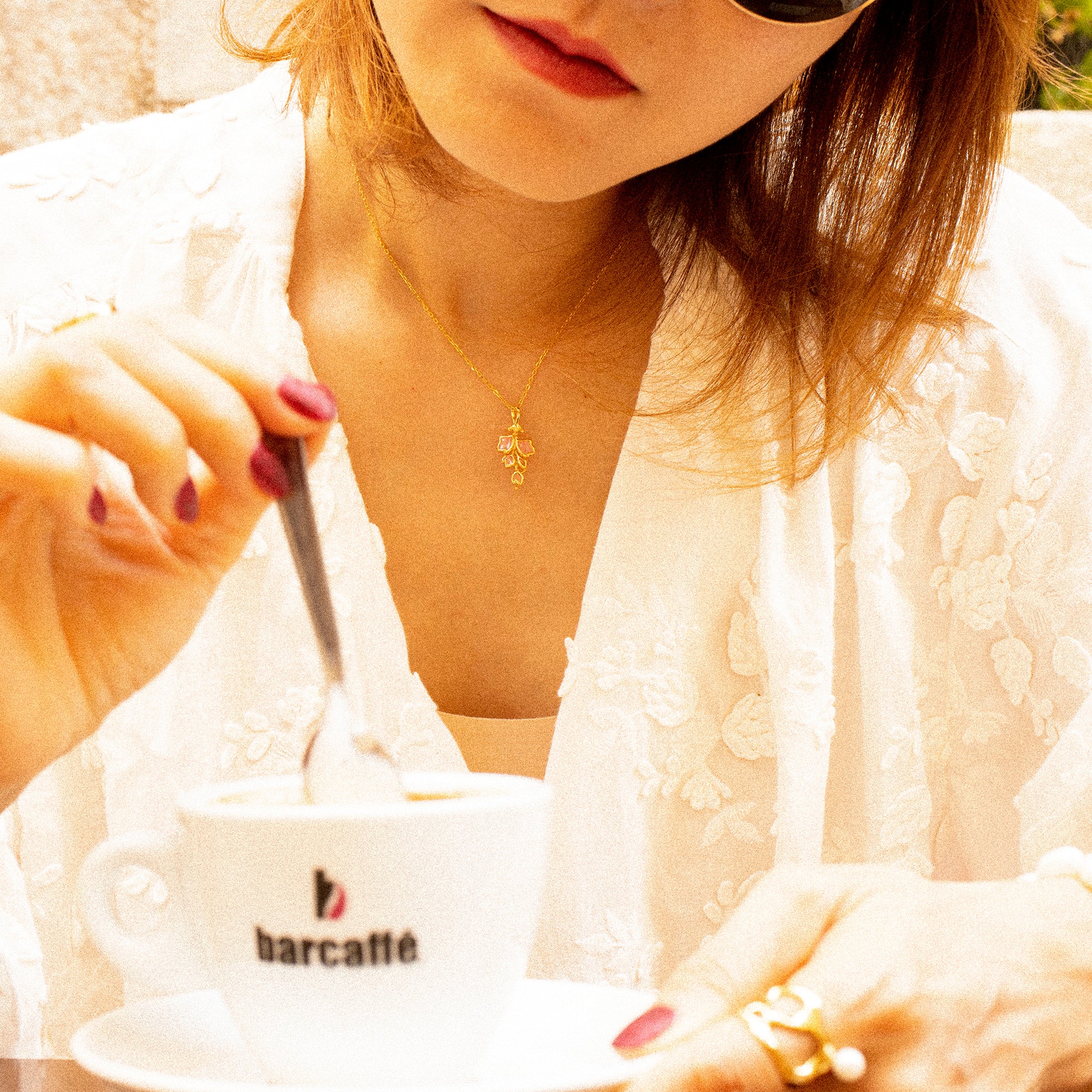 Ob im Alltag, zu festlichen Anlässen oder als romantisches Highlight – die Kette lässt sich vielseitig tragen. Sie passt wunderbar zu floralen Outfits, kann aber auch im Layering mit filigranen Goldketten kombiniert werden, um einen modernen Look zu kreieren.