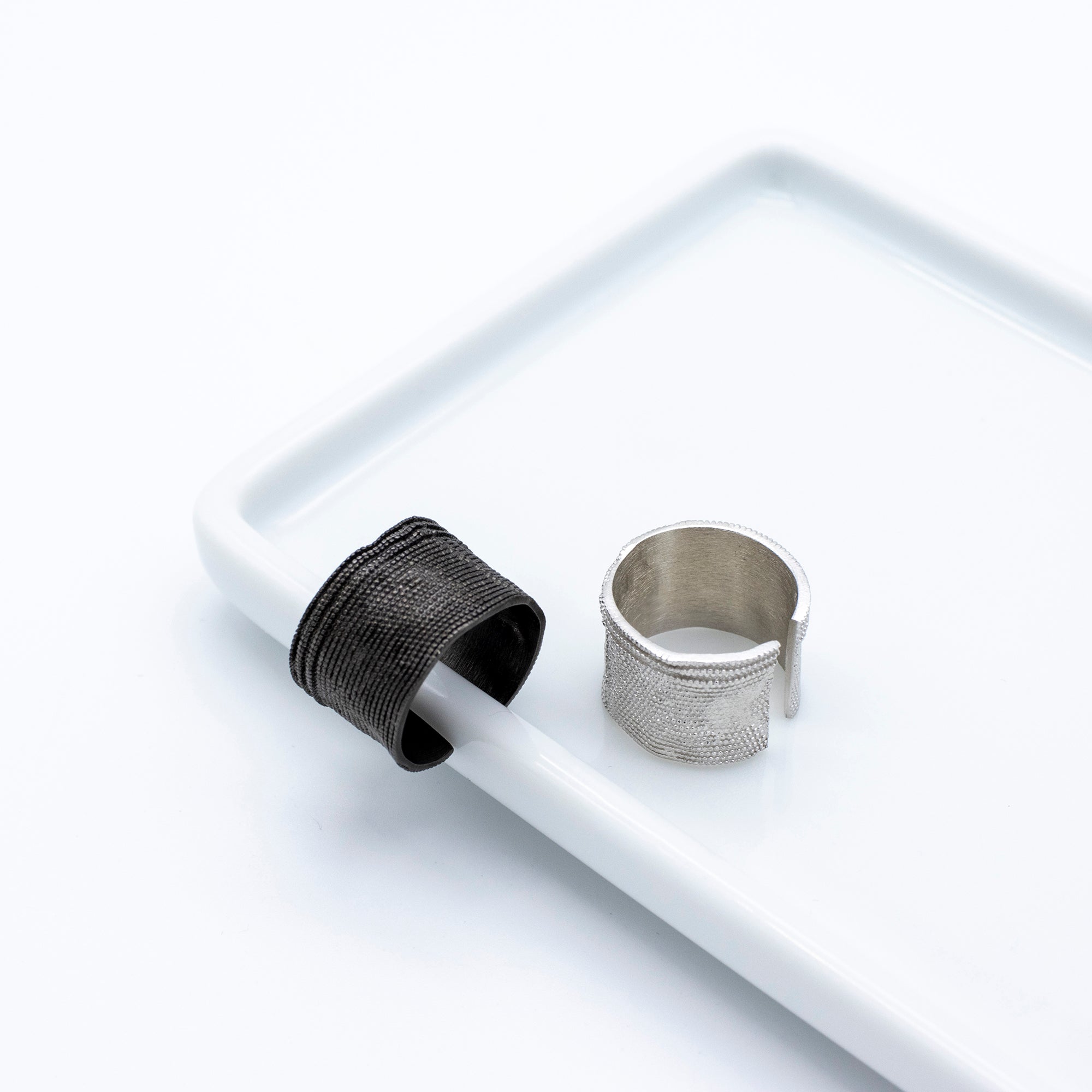 Der schwarze Bandring ist vielseitig kombinierbar – solo als markantes Statement oder im Layering mit weiteren Ringen für einen modernen Look. Durch sein offenes Design passt er sich angenehm dem Finger an und sorgt für Tragekomfort.