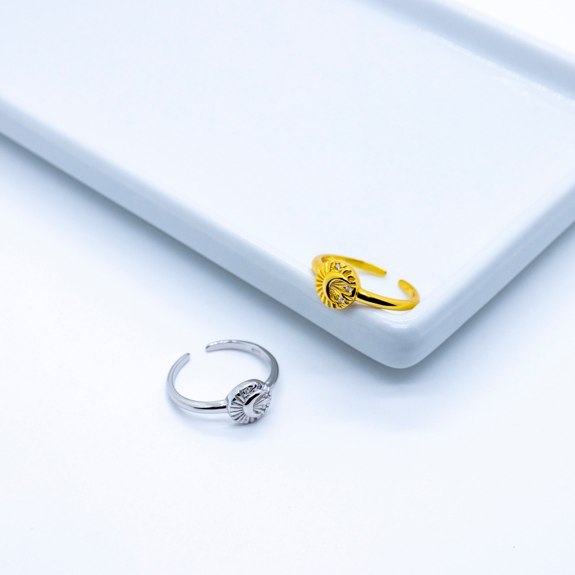 Der feine Siegelring Mond und Sterne aus 925er Sterlingsilber verleiht Ihrem Outfit ein kosmisches Finish. Der Ringkopf ist rund und lässt die himmlische Landschaft aus Relief-Mond und funkelnden Sternen hervorstehen. Der Traum eines jeden Nachtschwärmers wird zur Wirklichkeit.