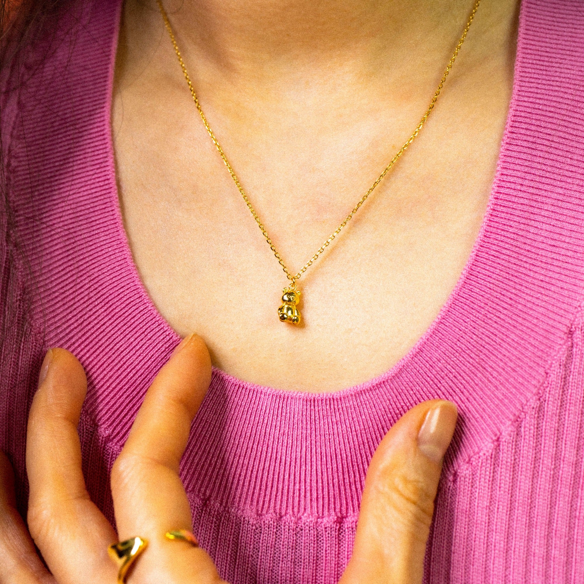 Verleihe Deinem Stil eine süße und individuelle Note mit der vergoldeten Teddybärhalskette aus hochwertigem 925er Sterlingsilber. Der liebevoll gestaltete Teddybär-Anhänger sorgt für verspielten Charme in Deinem Alltag.