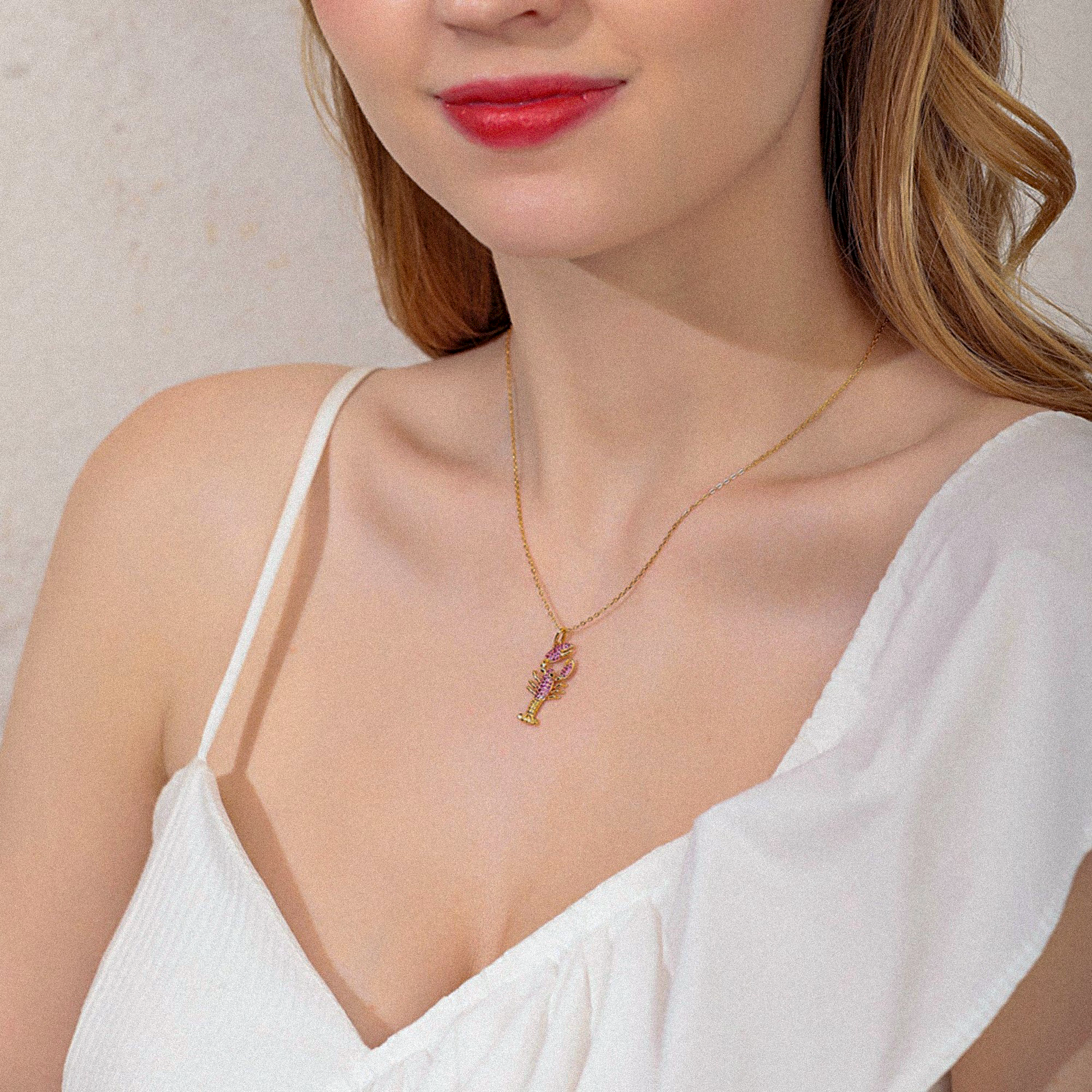Die Hummer-Halskette in Gold ist in luxuriösem Design gestaltet und bietet einen extravaganten Look. Der Hummer-Anhänger ist mit funkelnden roten Rubinen besetzt und aufgestylt. Schillernde Farbenpracht aus Rubin sagt die Liebe und Leidenschaft an und sorgt für ein unvergleichliches Aussehen.