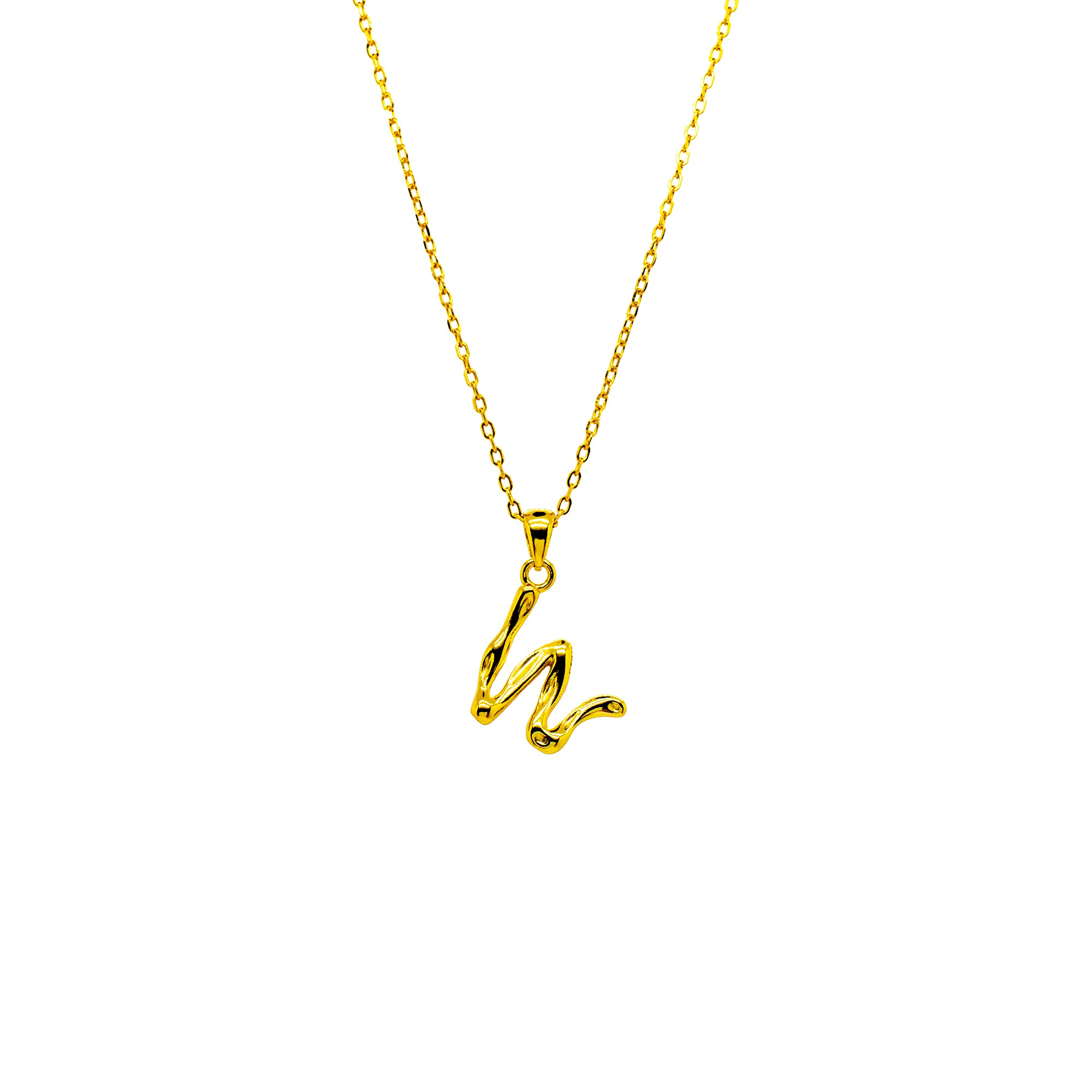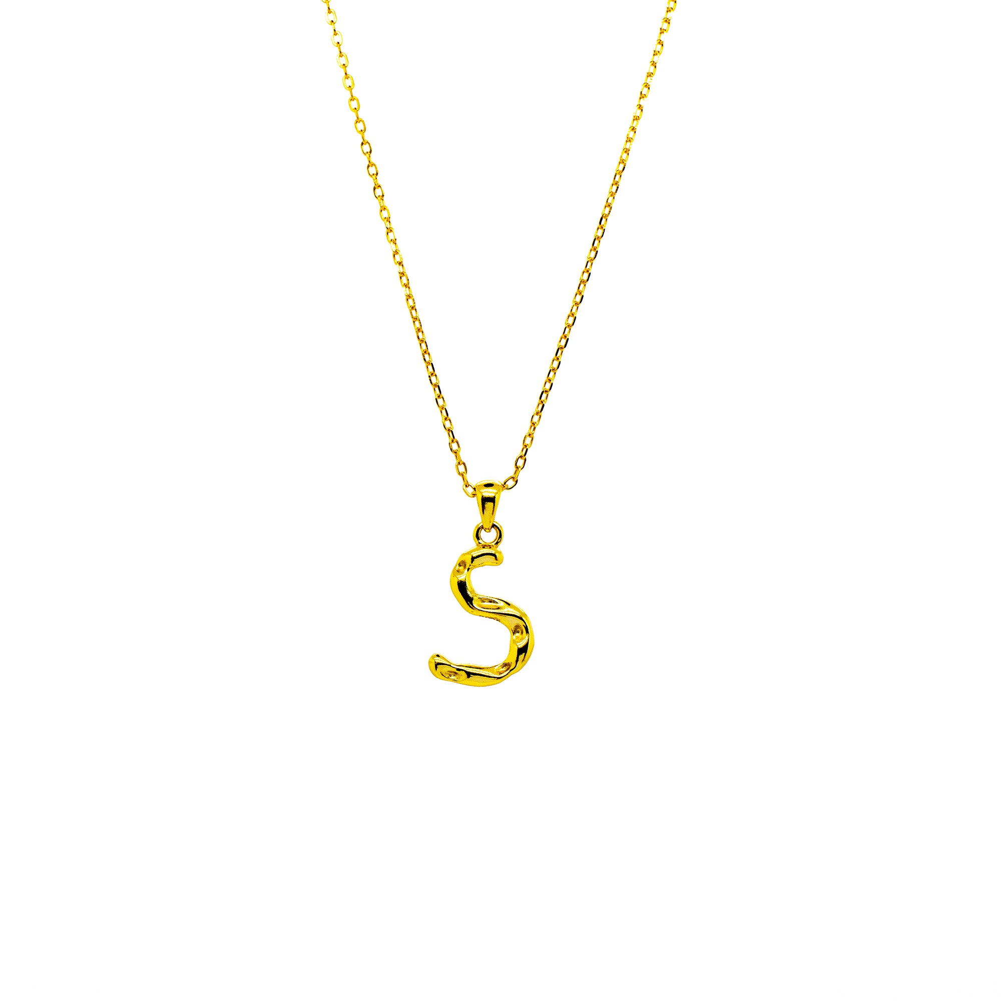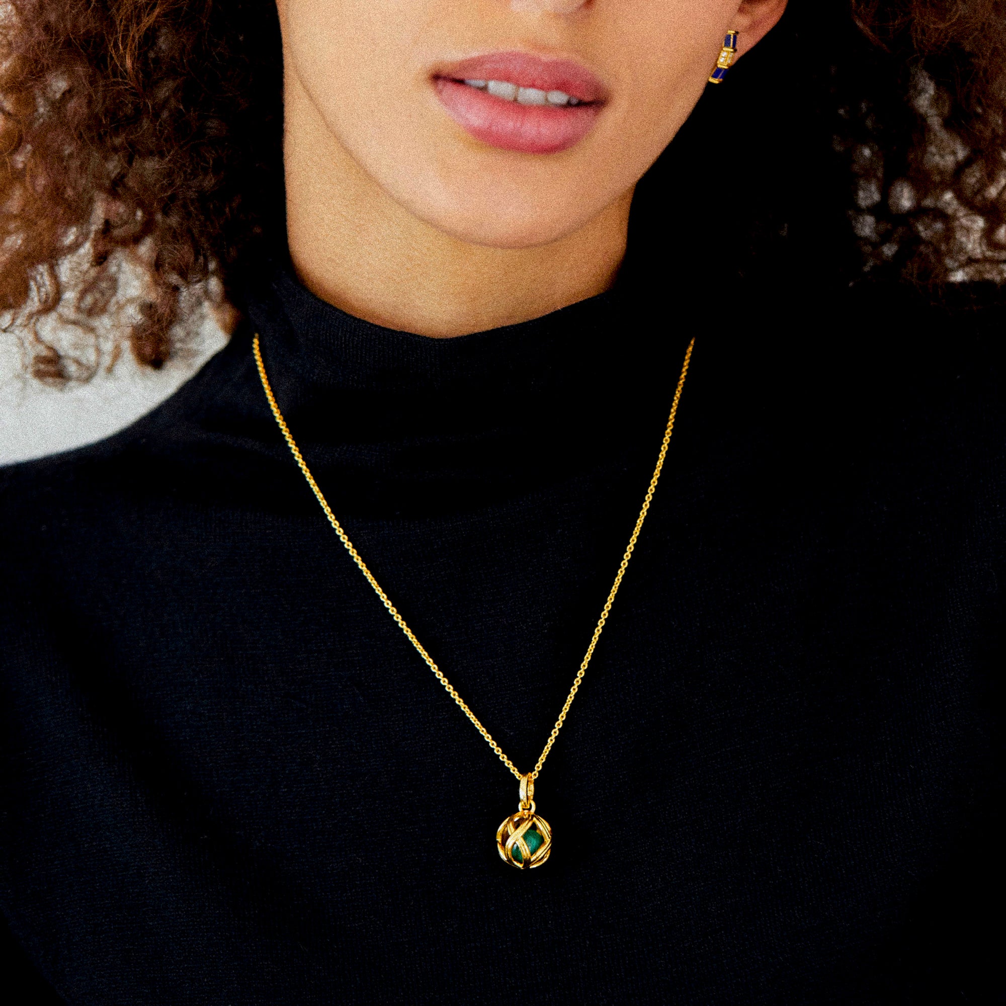 KASU S925 Buchstabe R Goldkette mit Diamantenpavé, grün Achat/Perlmutt