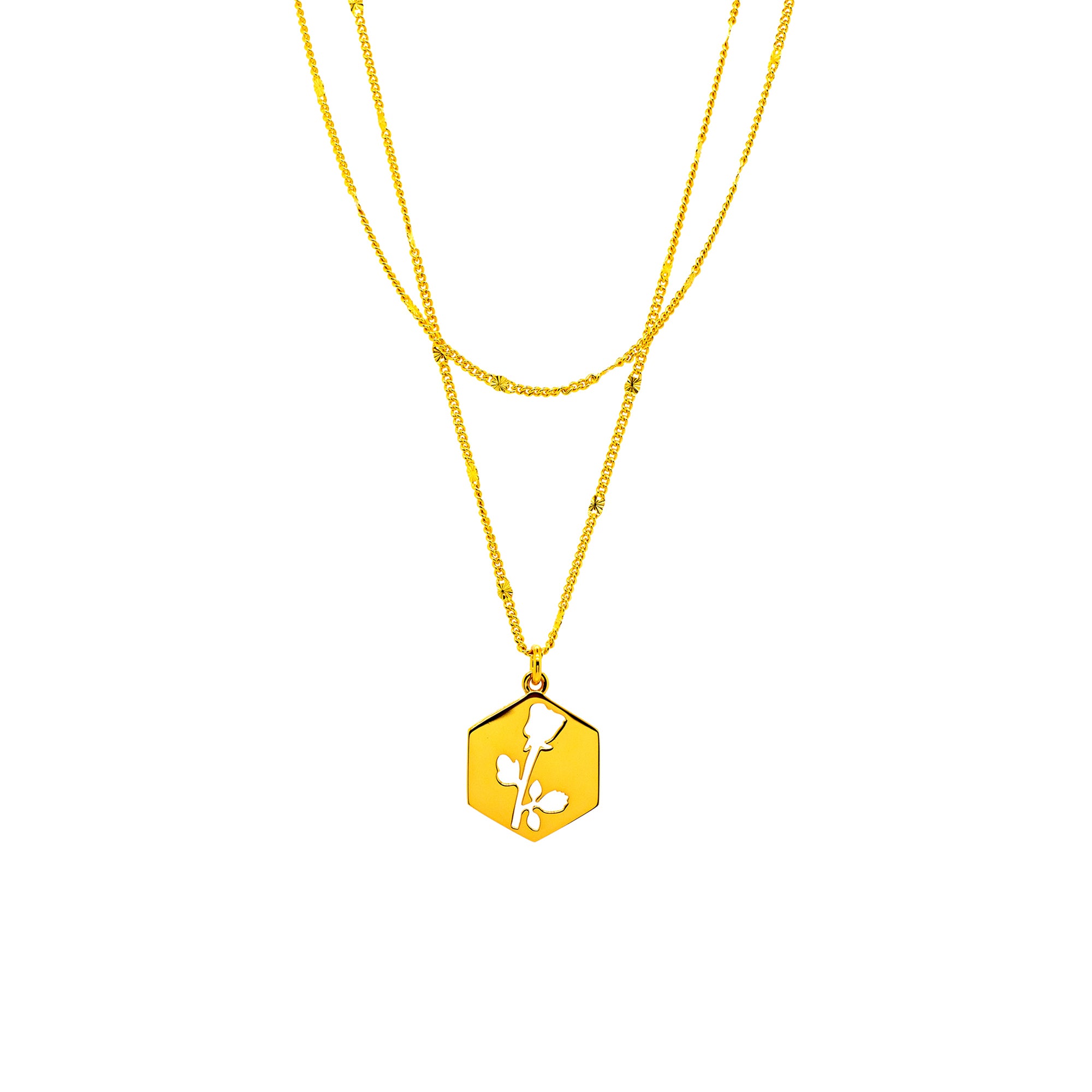 GERTRUDE Granat Kettenanhänger in Gold, Herz & Quadrat