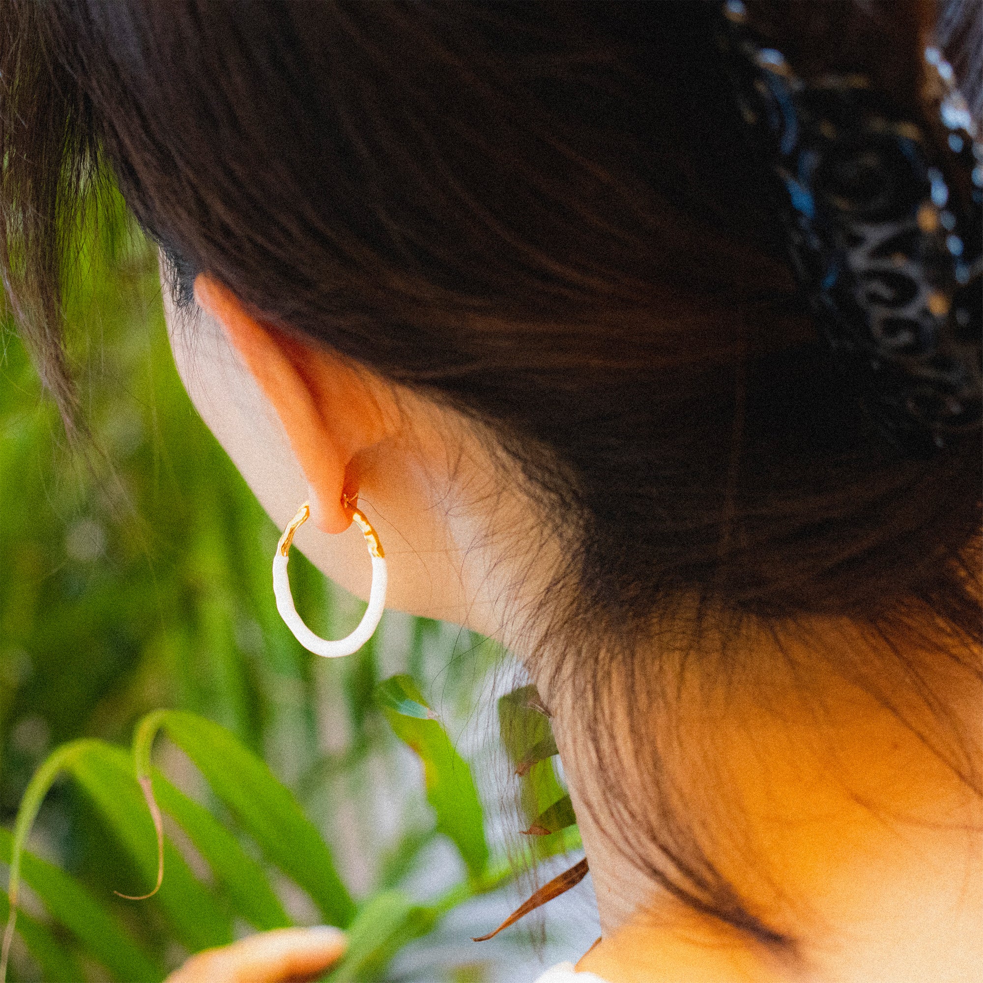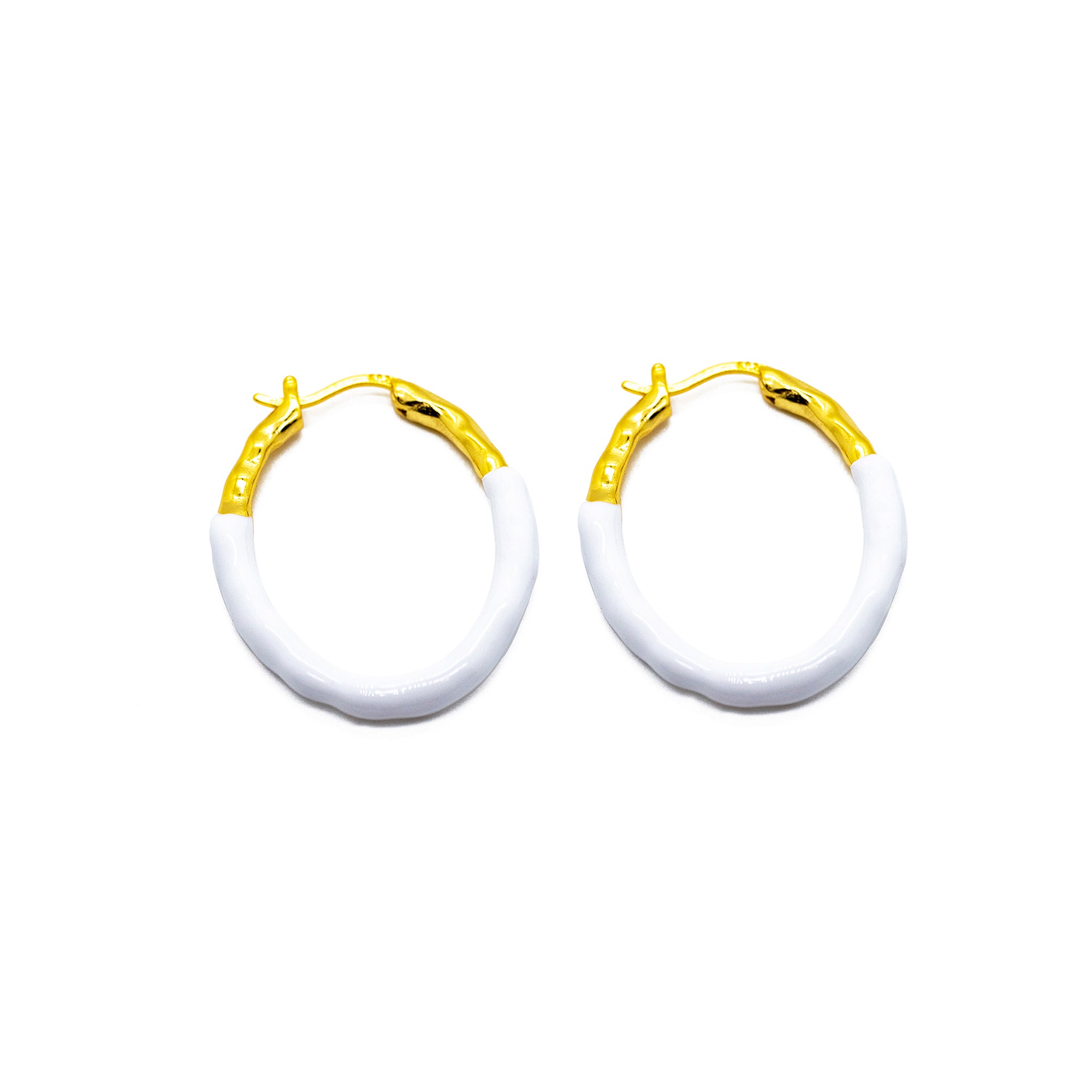 MELANIE Goldcreolen mit weißer Glasuren-Ummantelung - 925 Silber