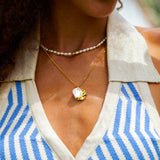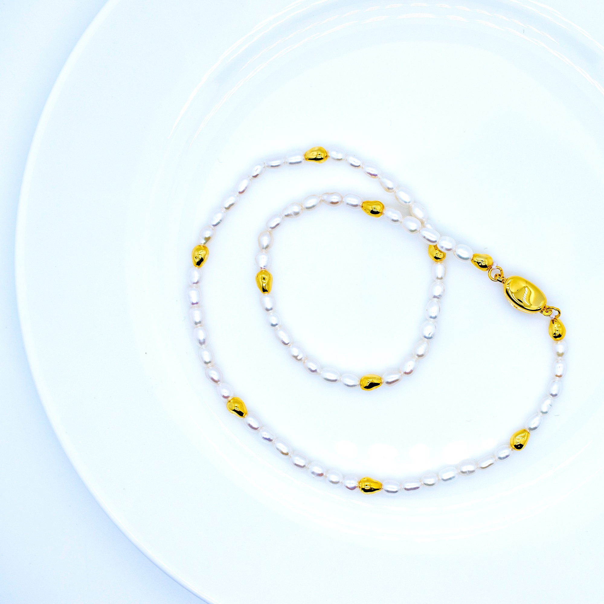 Our 'NORA' pearl necklace is made with fine, natural freshwater pearls in a soft, milky color. The elegant design is rounded off with fine gold beads that are gently worked into the chain. A perfect companion for shining in an eye-catching yet elegant way.