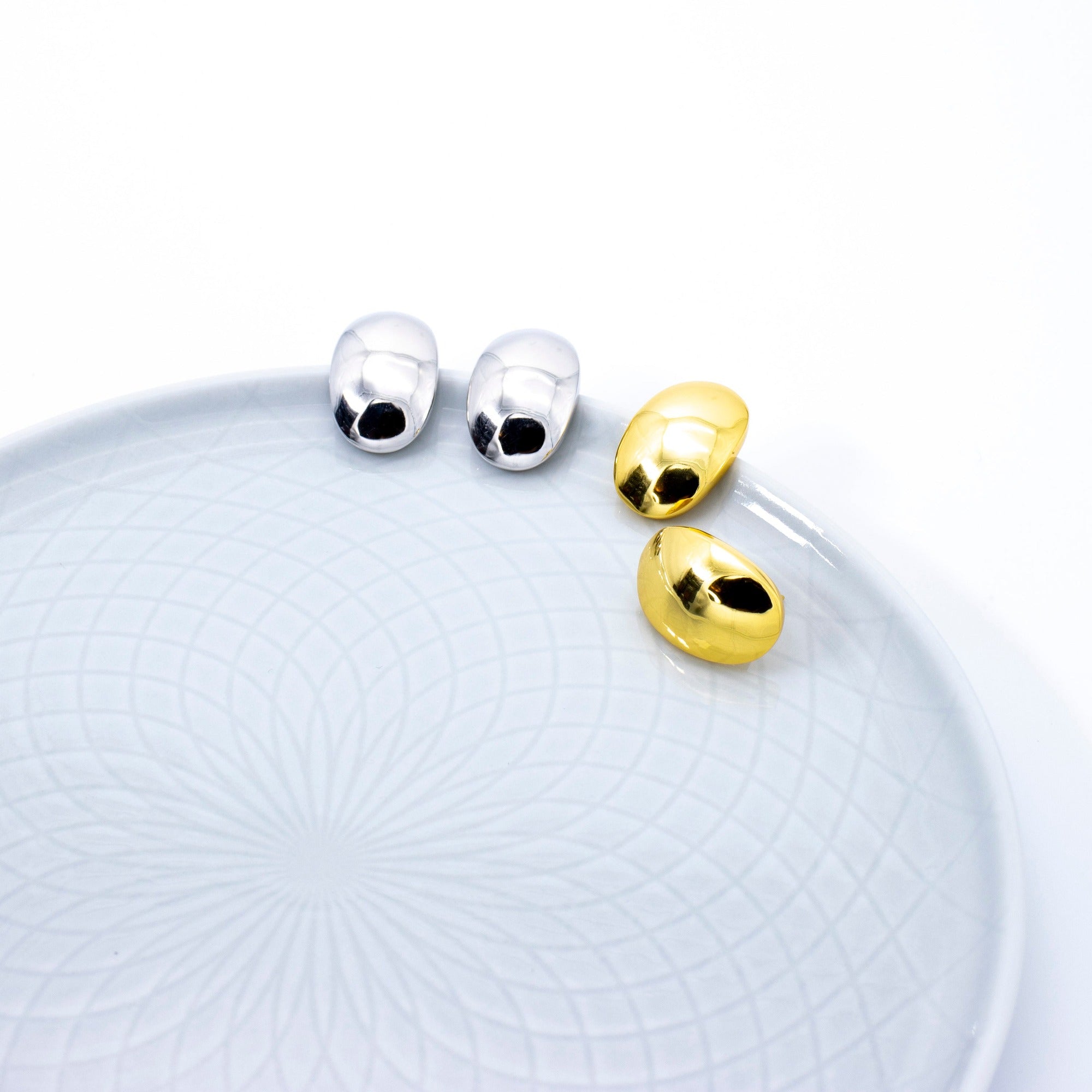 AALIYAH gold large oval earrings-ear studs shiny made of 925 sterling silver