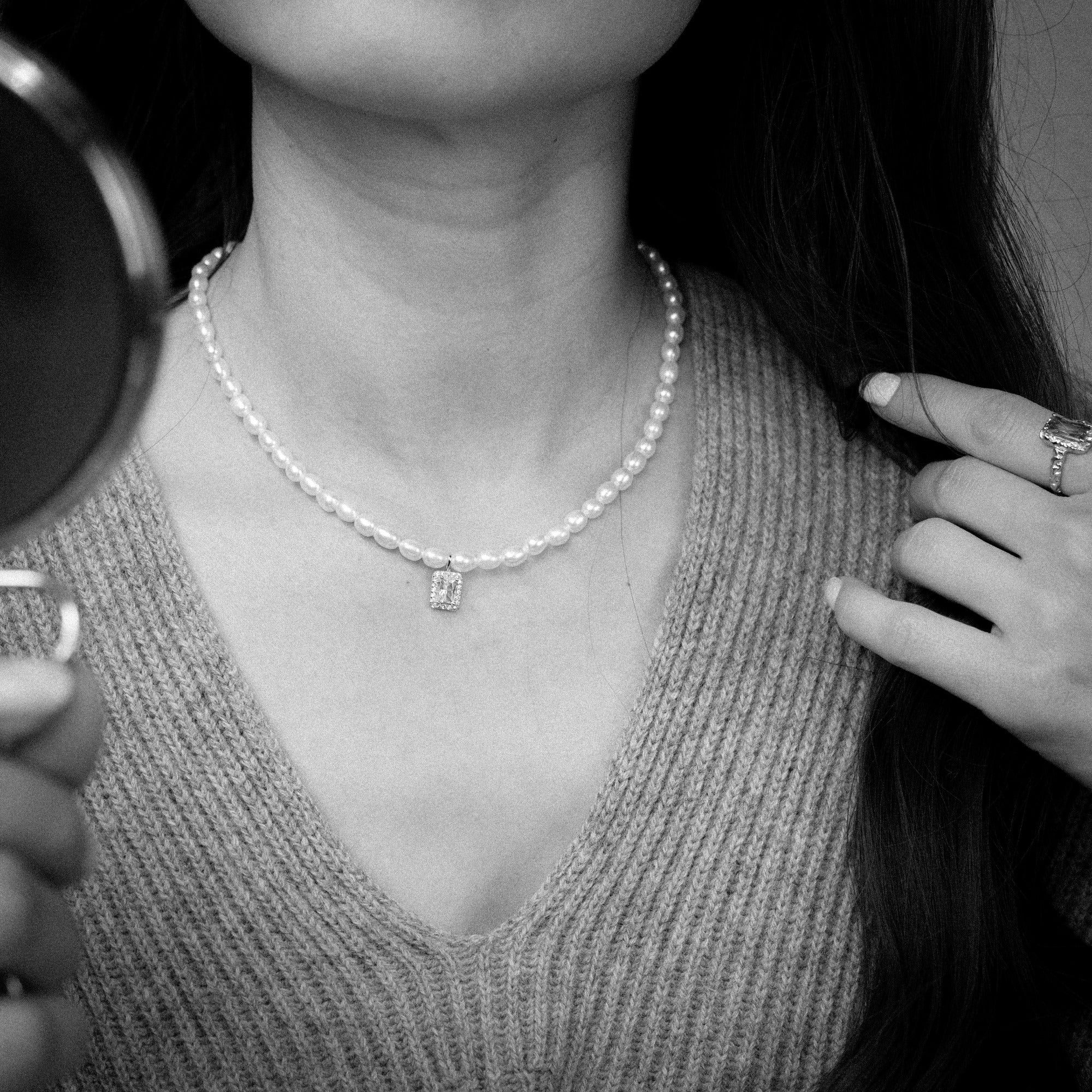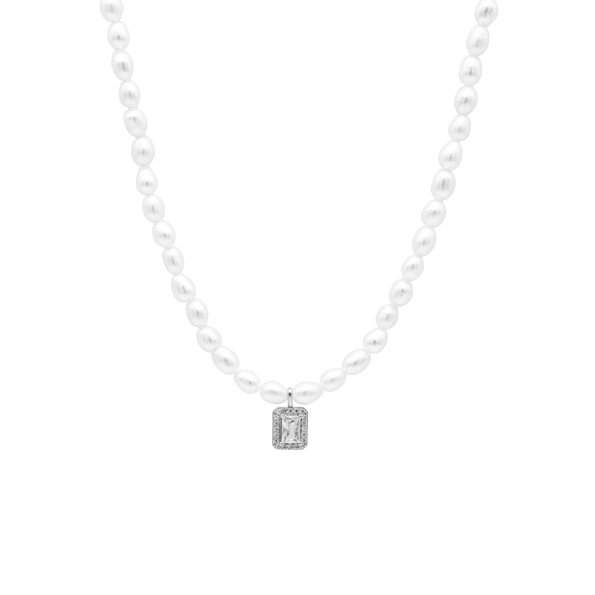 The modern design of this pearl necklace for women is impressive. The necklace is made of baroque freshwater pearls and is complemented by a square stone pendant. The length of the chain is thanks to the Extension chain individually adjustable.