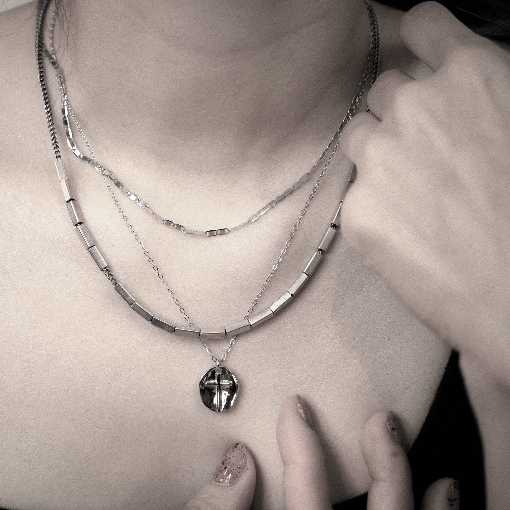 This stylish necklace and bracelet are made of finely cut and polished shiny chips. Each side of the jewelry is unique and reflects the light to create a sparkling appearance. Wear it as a single piece or layer it with others for a modern look. Absolutely it-piece!