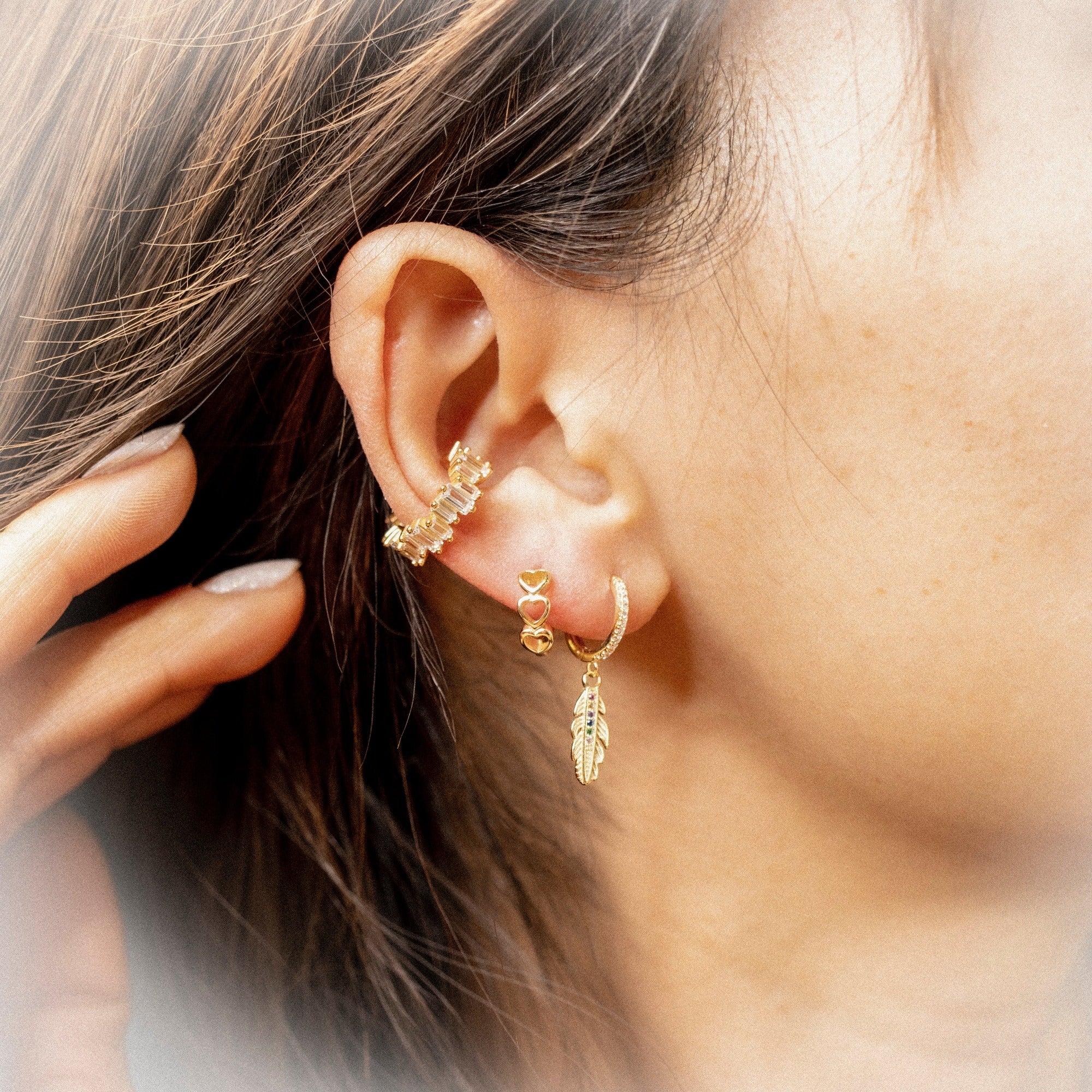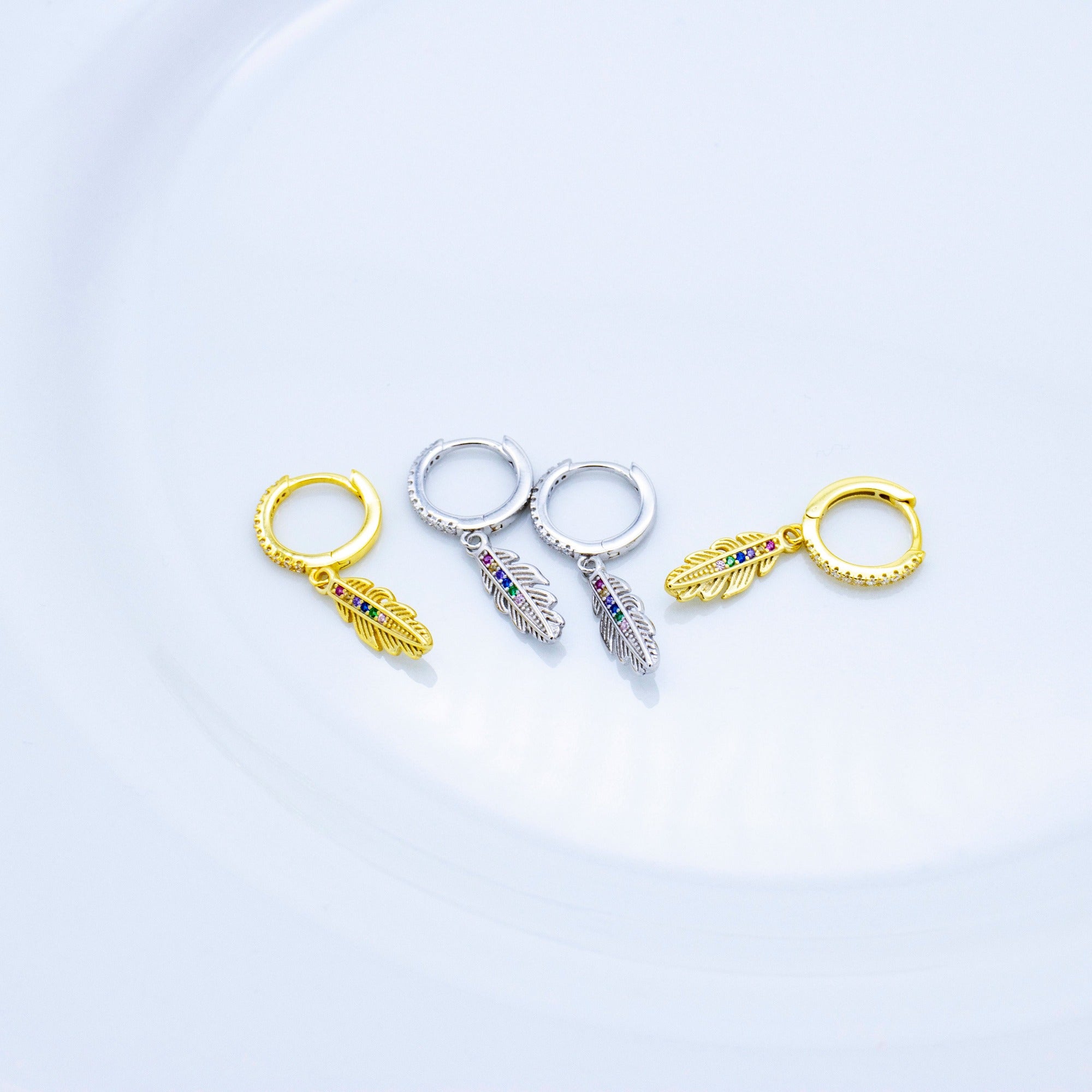 'Cuiaba' gold hoop earrings with feather pendant made of 925 sterling silver