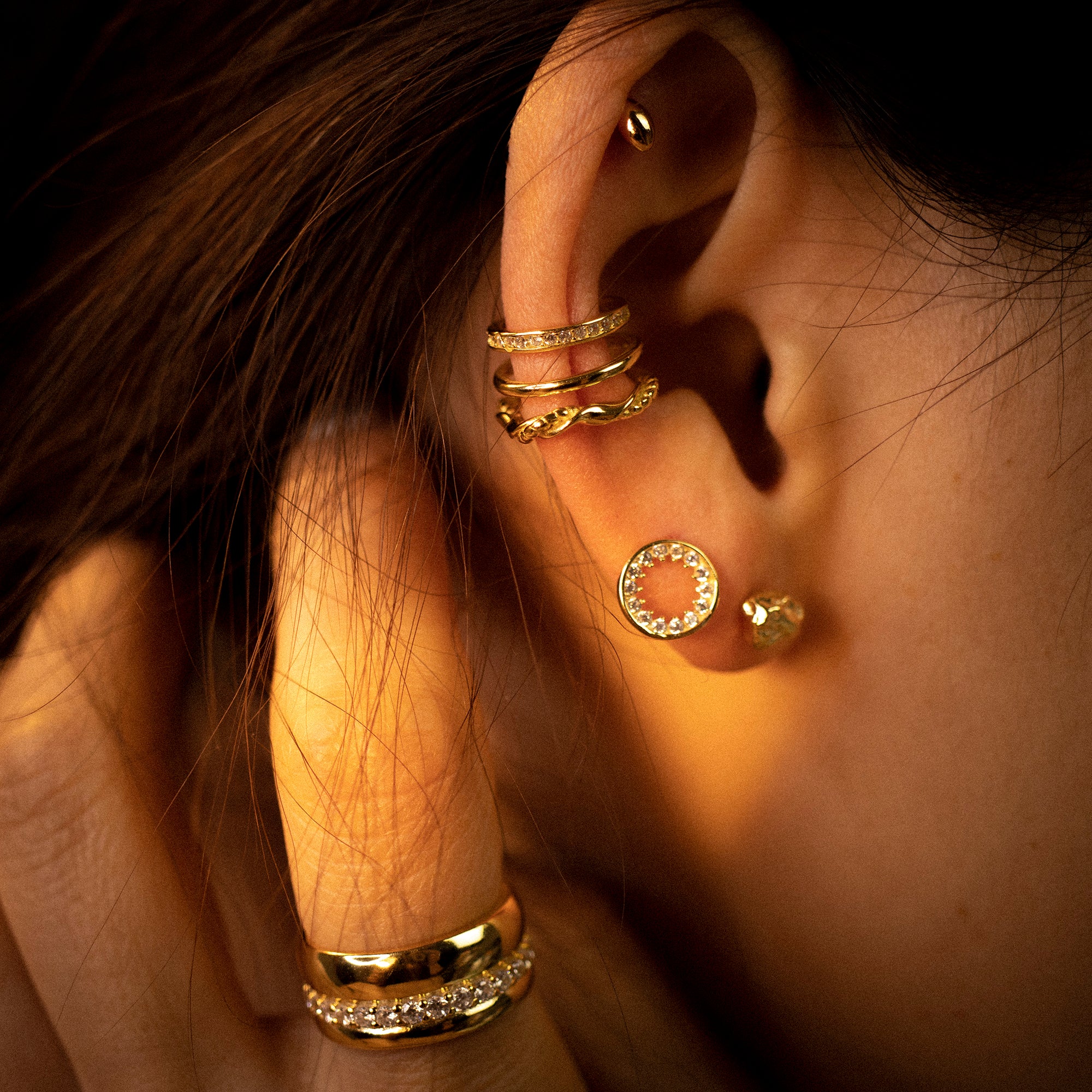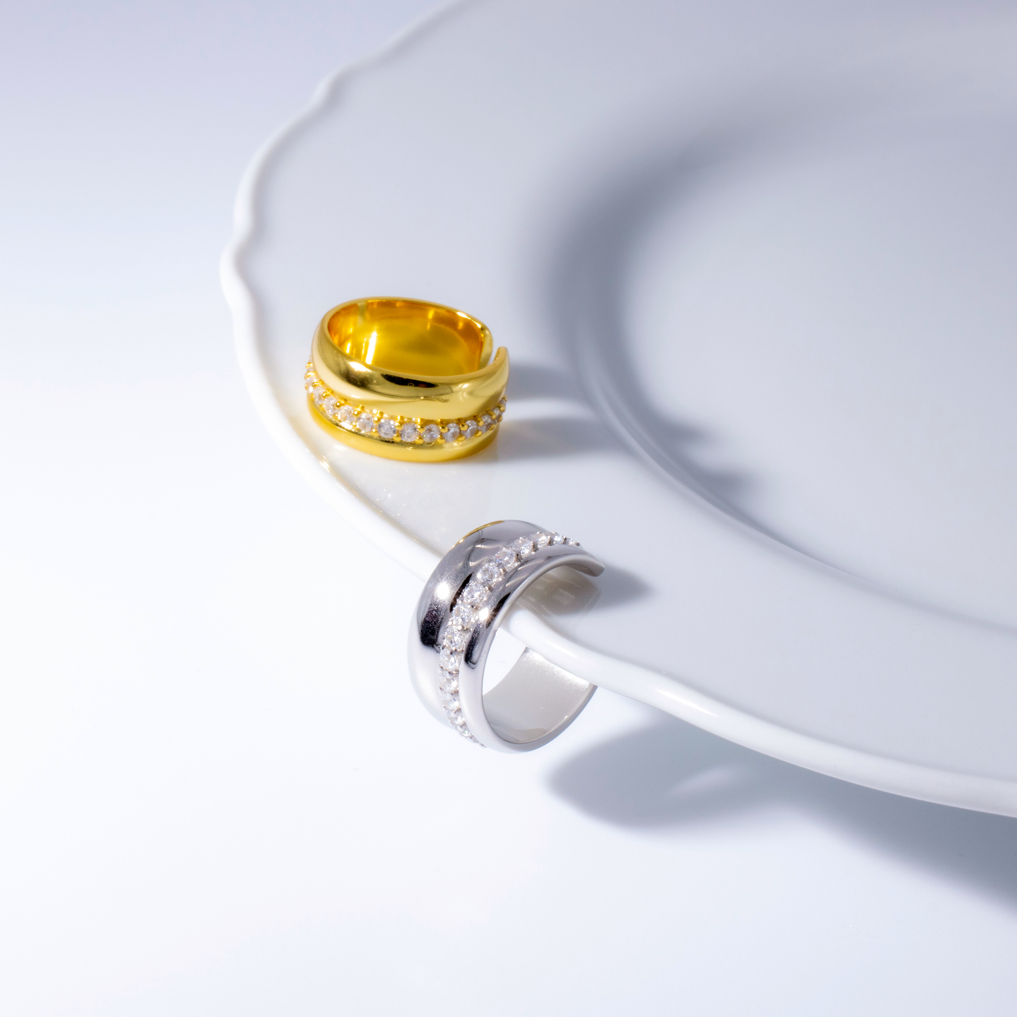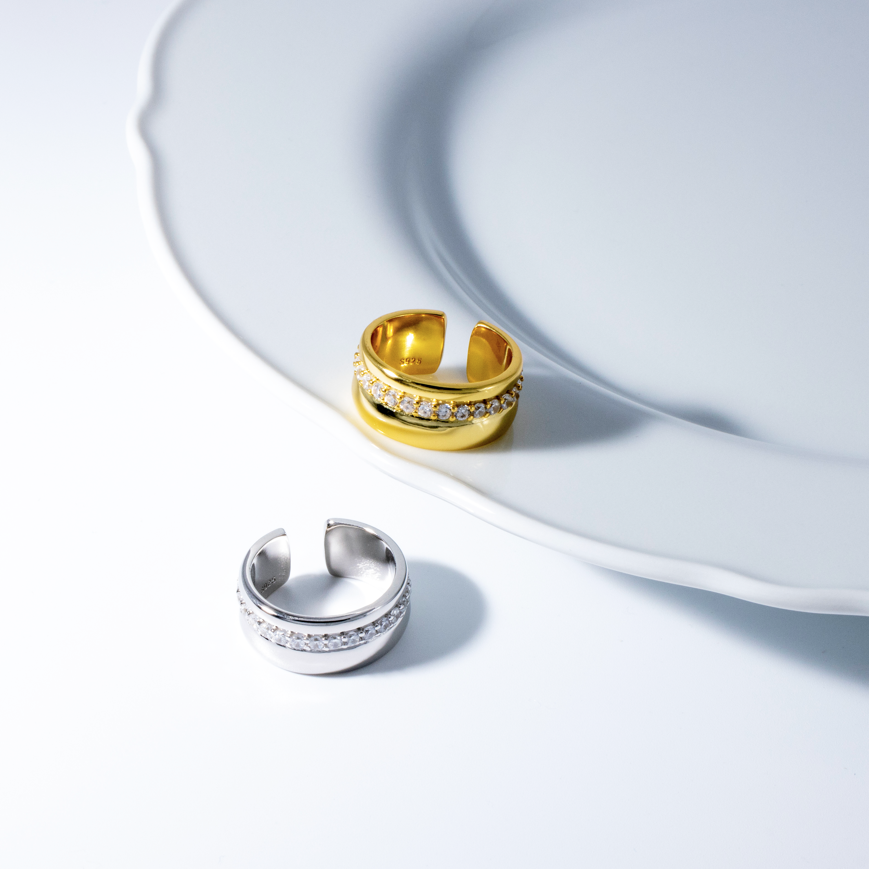 'Dirkou' gold open ring with zirconia made of 925 sterling silver