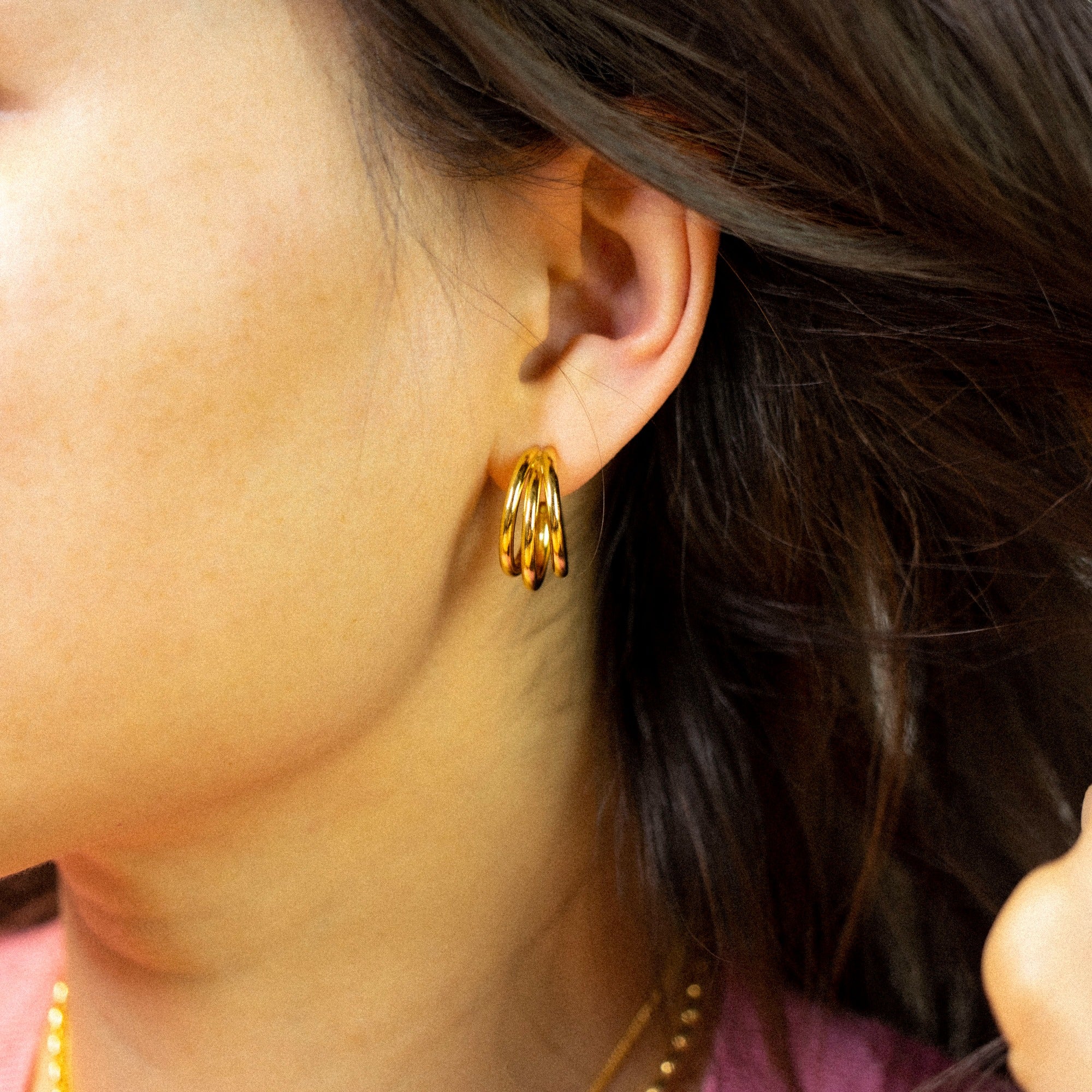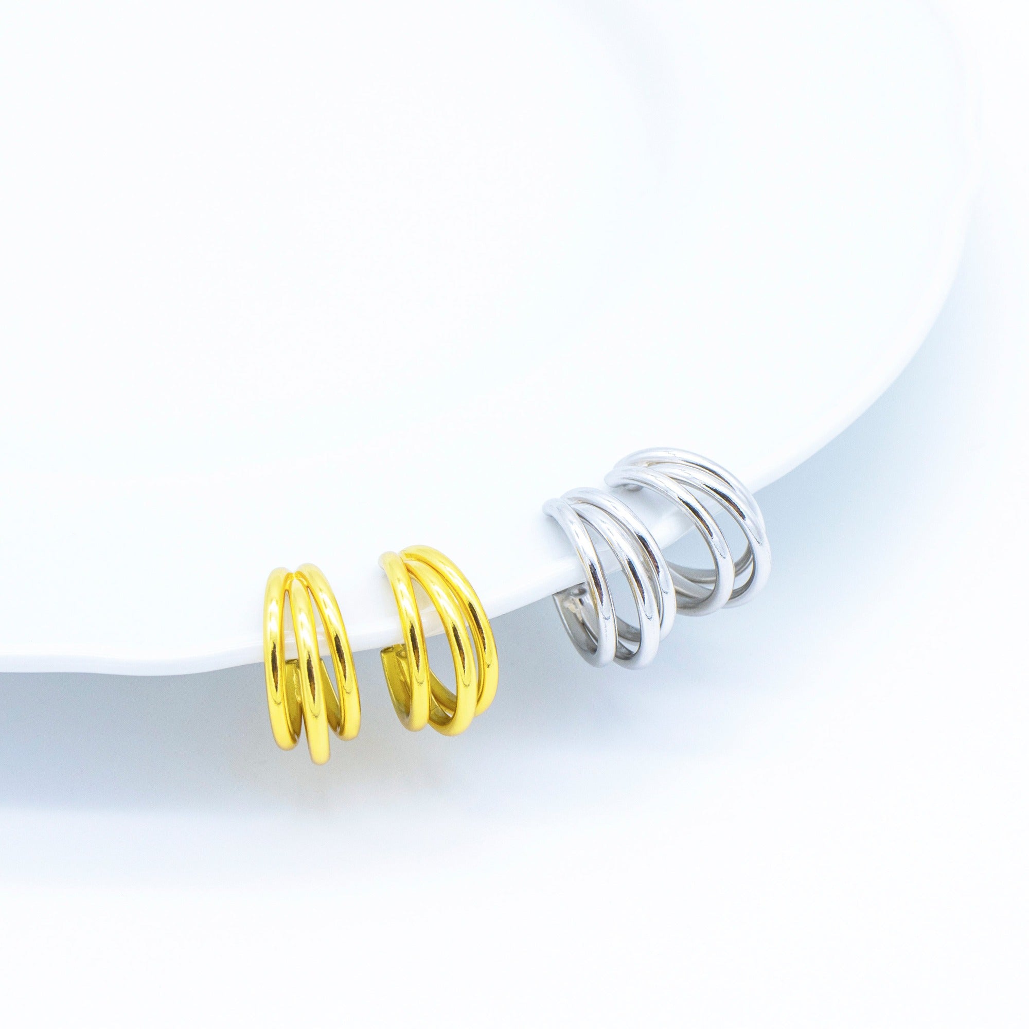'Kaven' gold layered look hoop earrings in sterling silver
