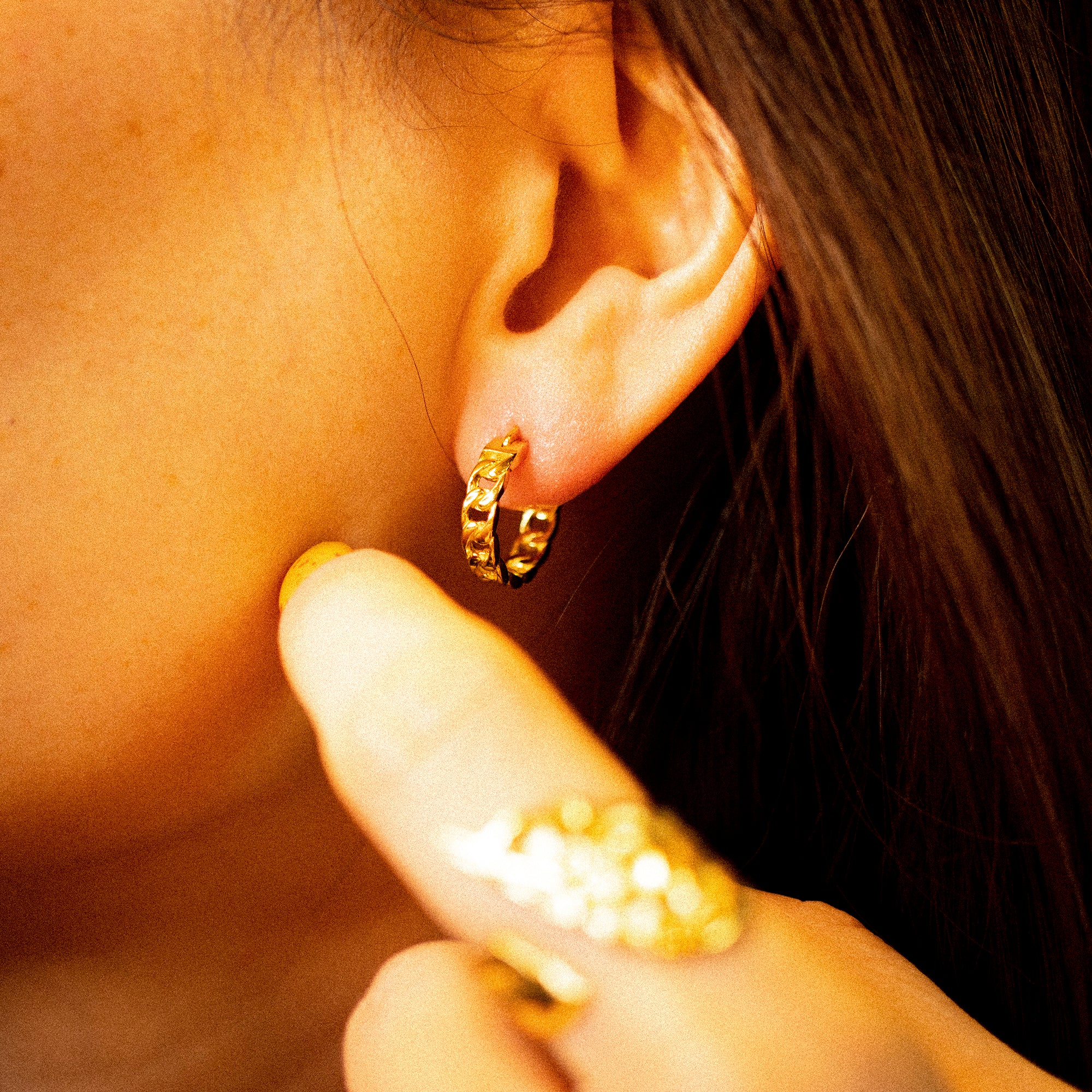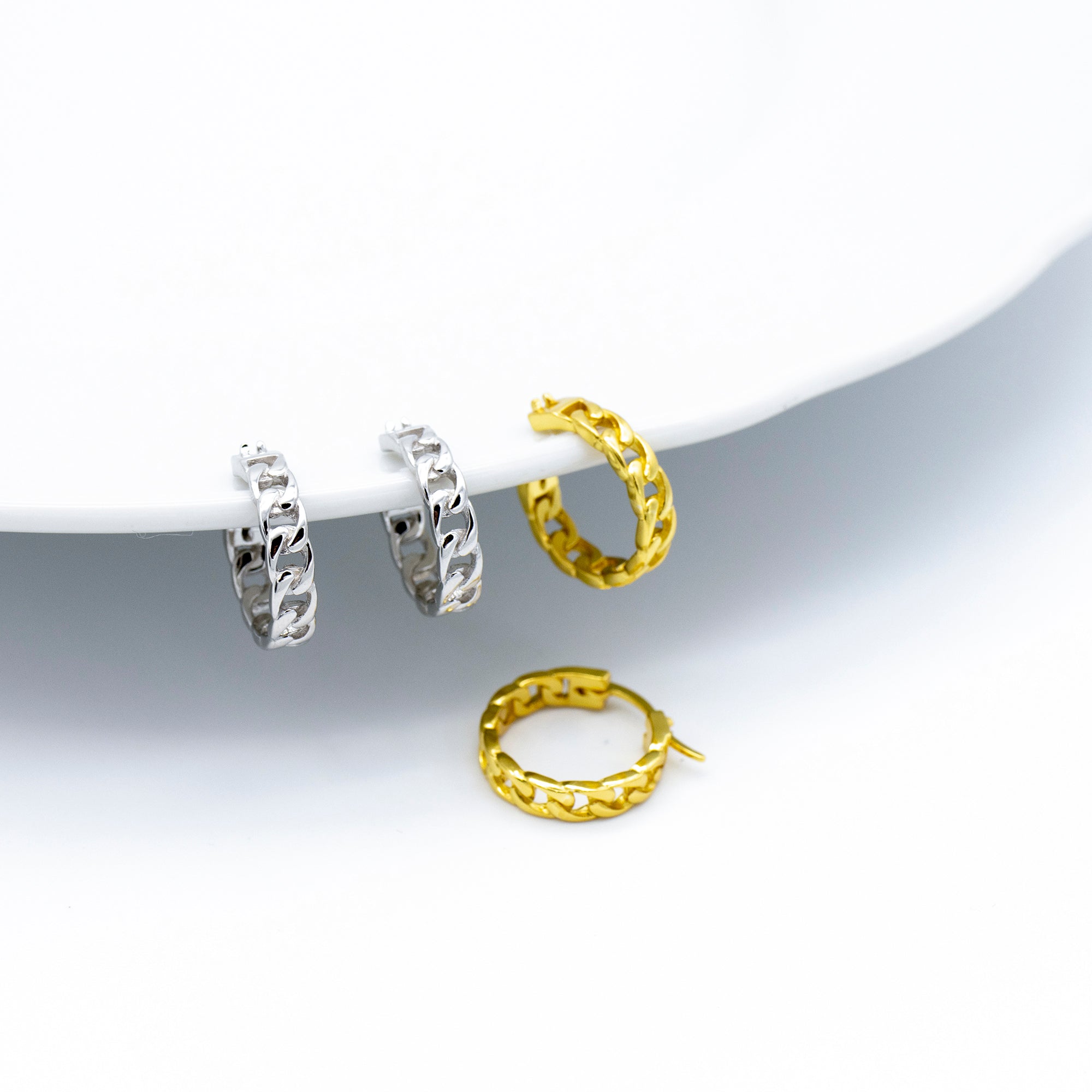 MARTHA Gold hoop earrings in chain design - 925 silver