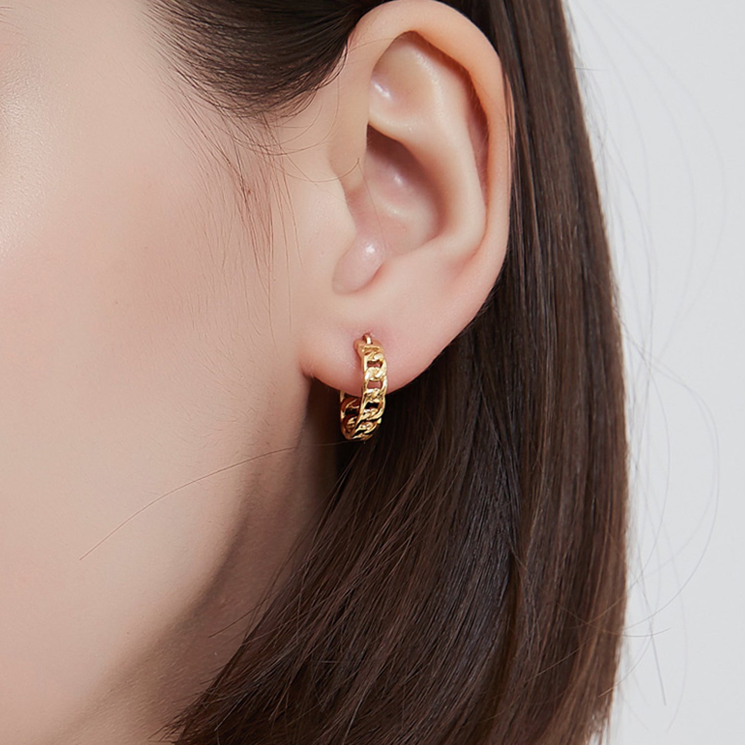These understated hoop earrings in gleaming 925 sterling silver lend the wearer's ears an air of exclusivity. The beautifully crafted chain design impresses with its elegance and stylish aesthetic. Thanks to their industrial-inspired style, the earrings stand out from the crowd and exude a luxurious look.