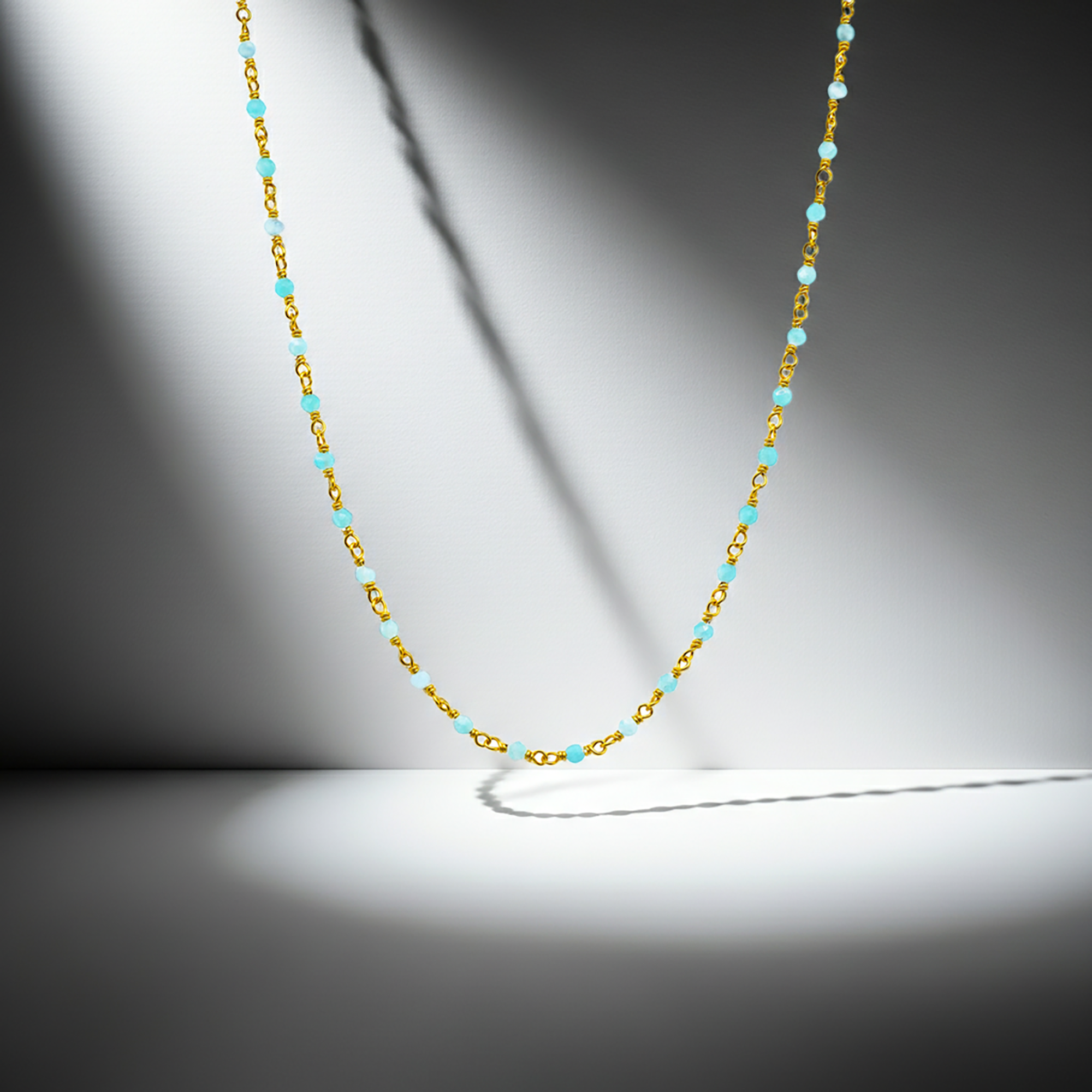 This feminine necklace with amazonite is an elegant and luxurious piece of jewelry. The sparkling amazonite gemstone beads create a beautiful focal point and make the necklace shine. The delicate design gives the understated women's necklace an optical depth and makes it a true designer piece.