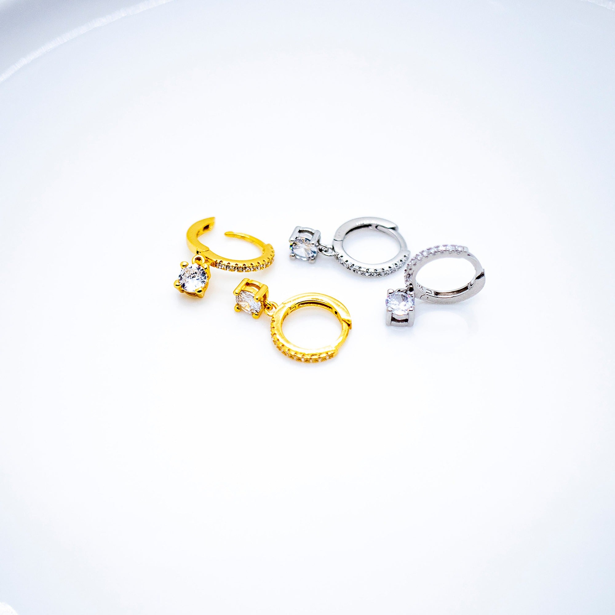 These elegant earrings/hoops are crafted from 925 sterling silver. They are stylishly set with sparkling cubic zirconia stones, exuding a subtle elegance. The square pendant, accentuated with a glittering stone, further enhances this sophisticated statement. Timeless favorites that complete any look.