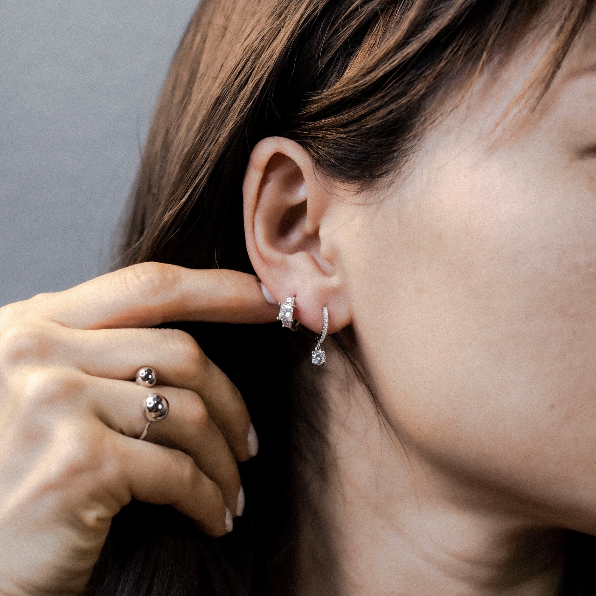 PEIXE Sparkling Square Drop Earrings - 925 Sterling Silver