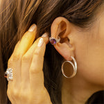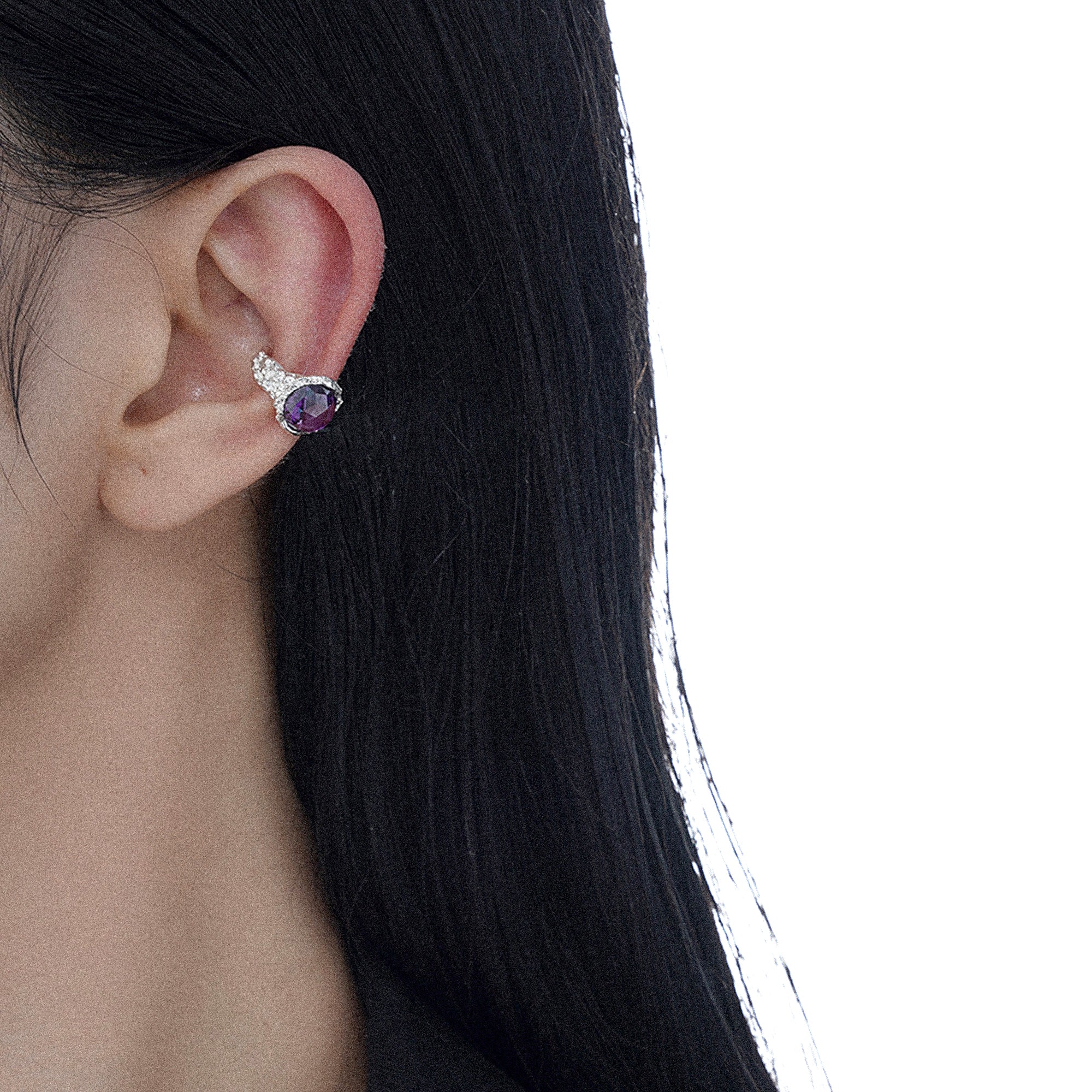 Discover this sterling silver ear cuff for a luxurious and sparkling look. A large, round-cut purple stone as the centerpiece provides exclusive sparkle. When the light hits it, the stone's play of colors is particularly intense. An exquisite choice for every woman who wants the absolute.