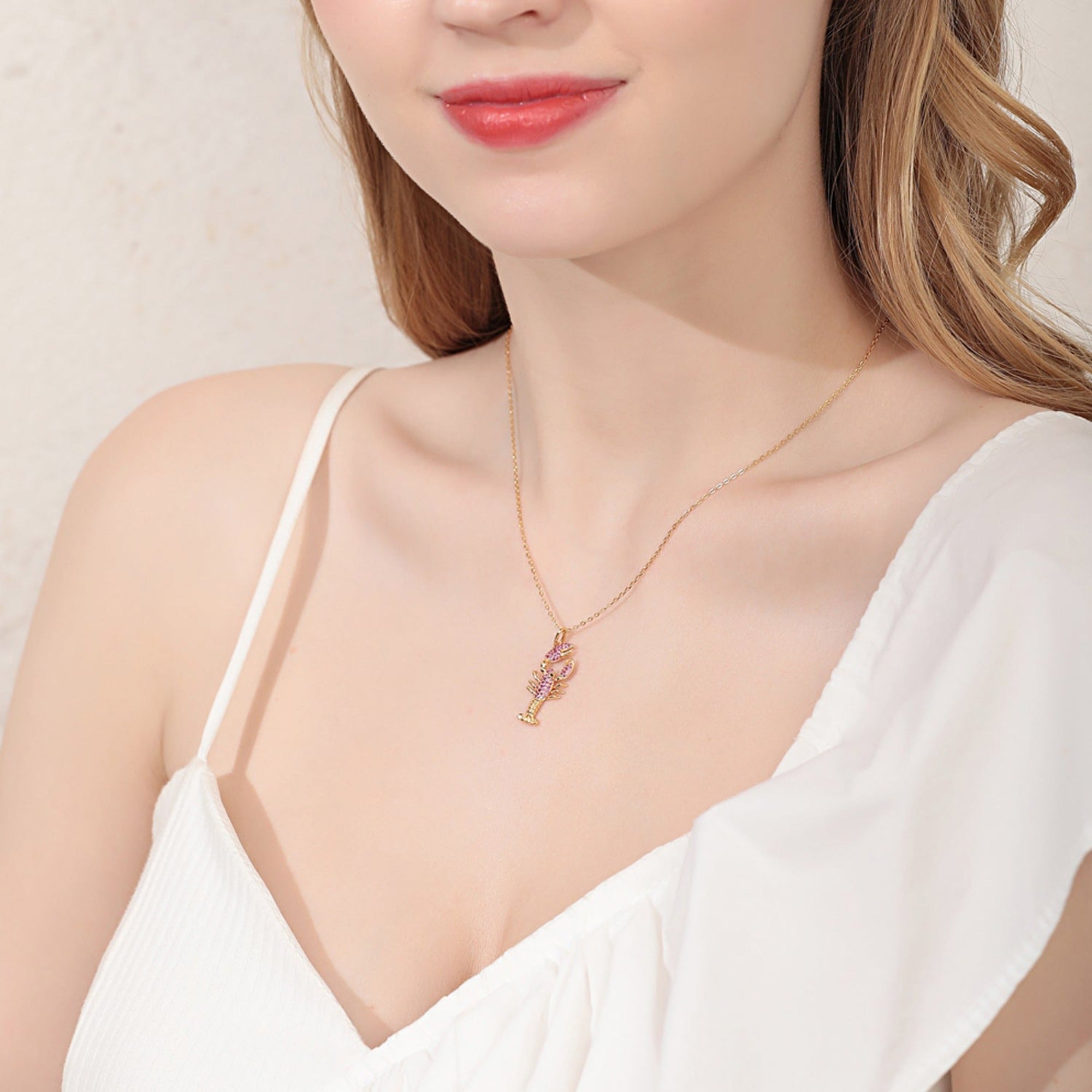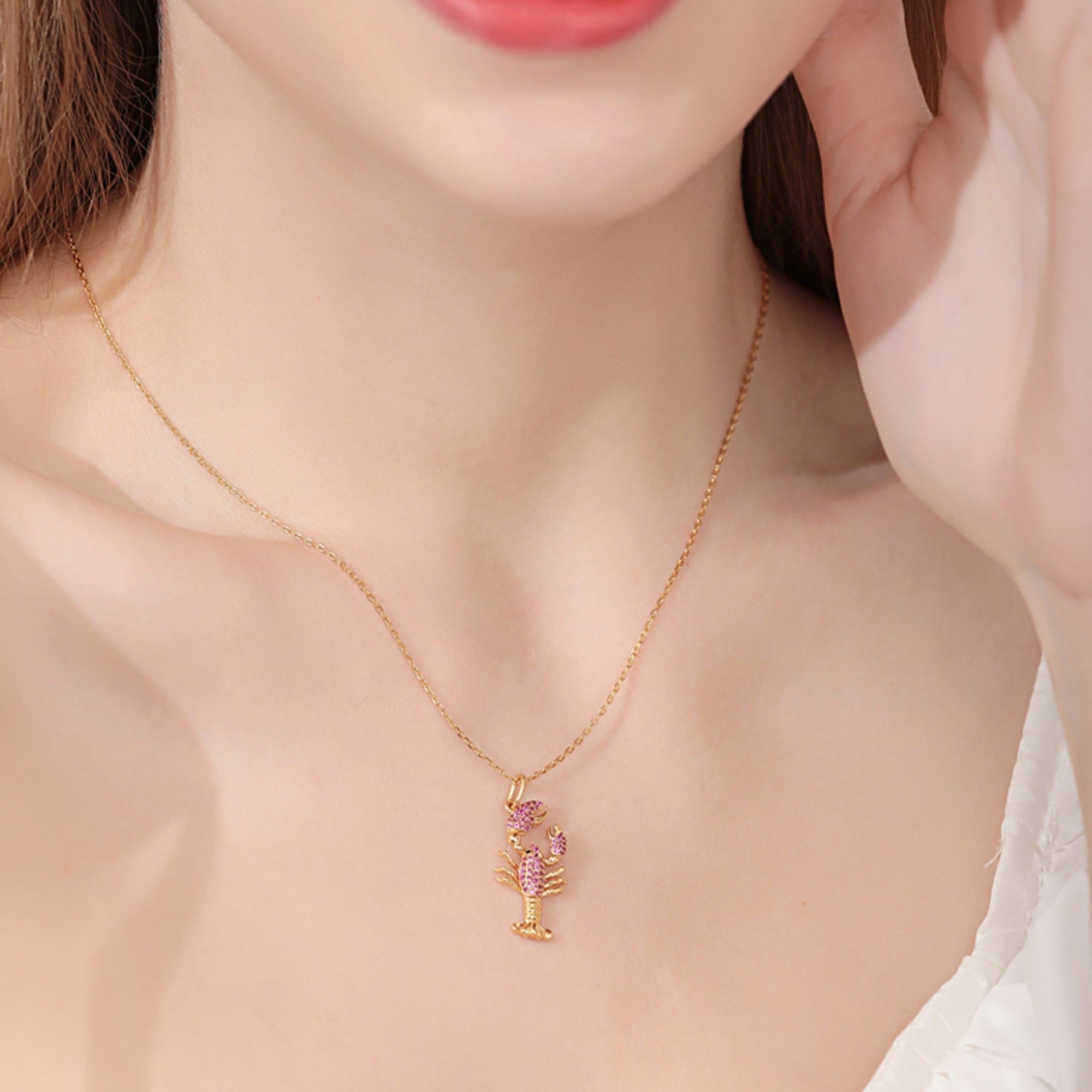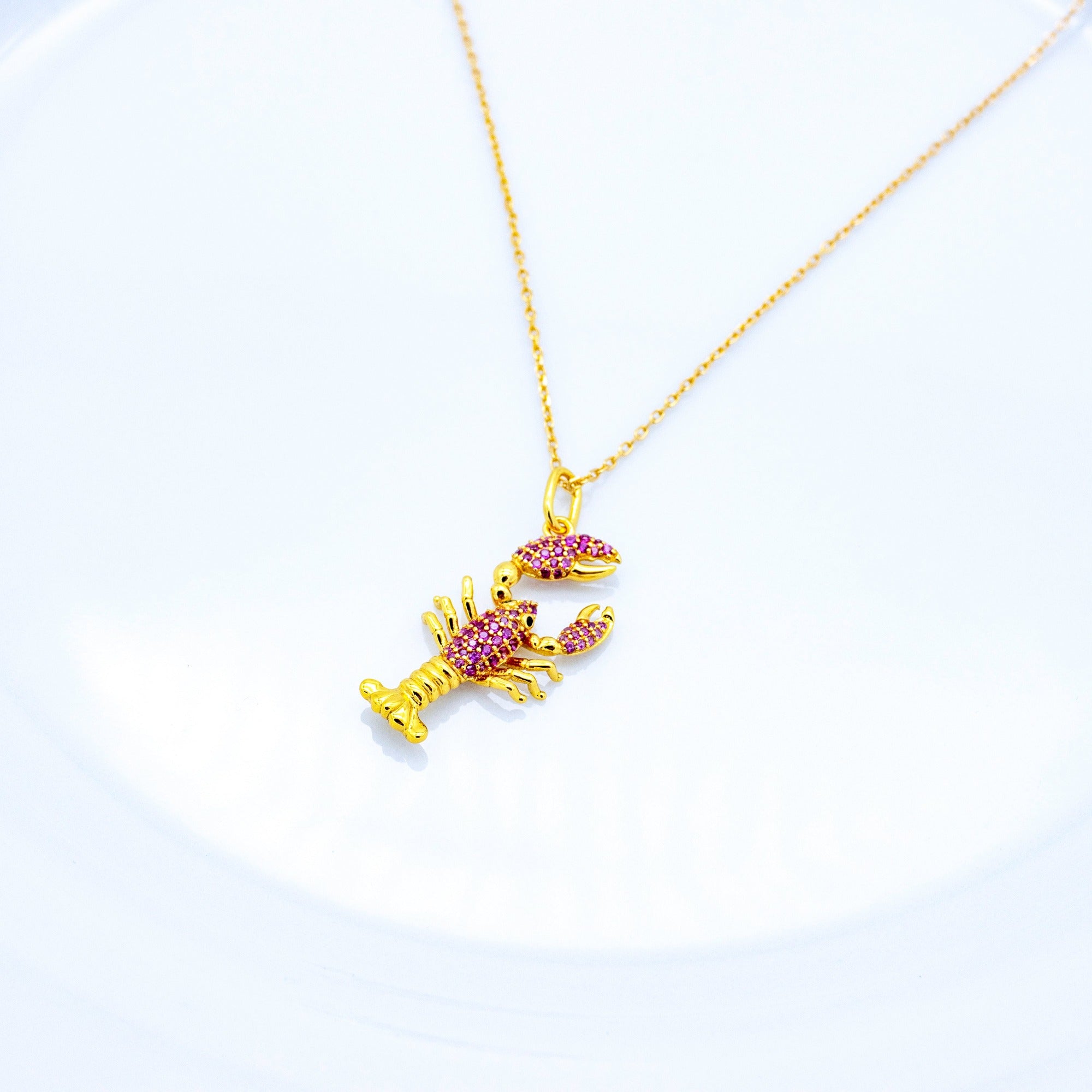 This gold lobster necklace boasts a luxurious design and an extravagant look. The lobster pendant is adorned with sparkling red rubies. The dazzling array of rubies symbolizes love and passion, creating an unparalleled appearance.