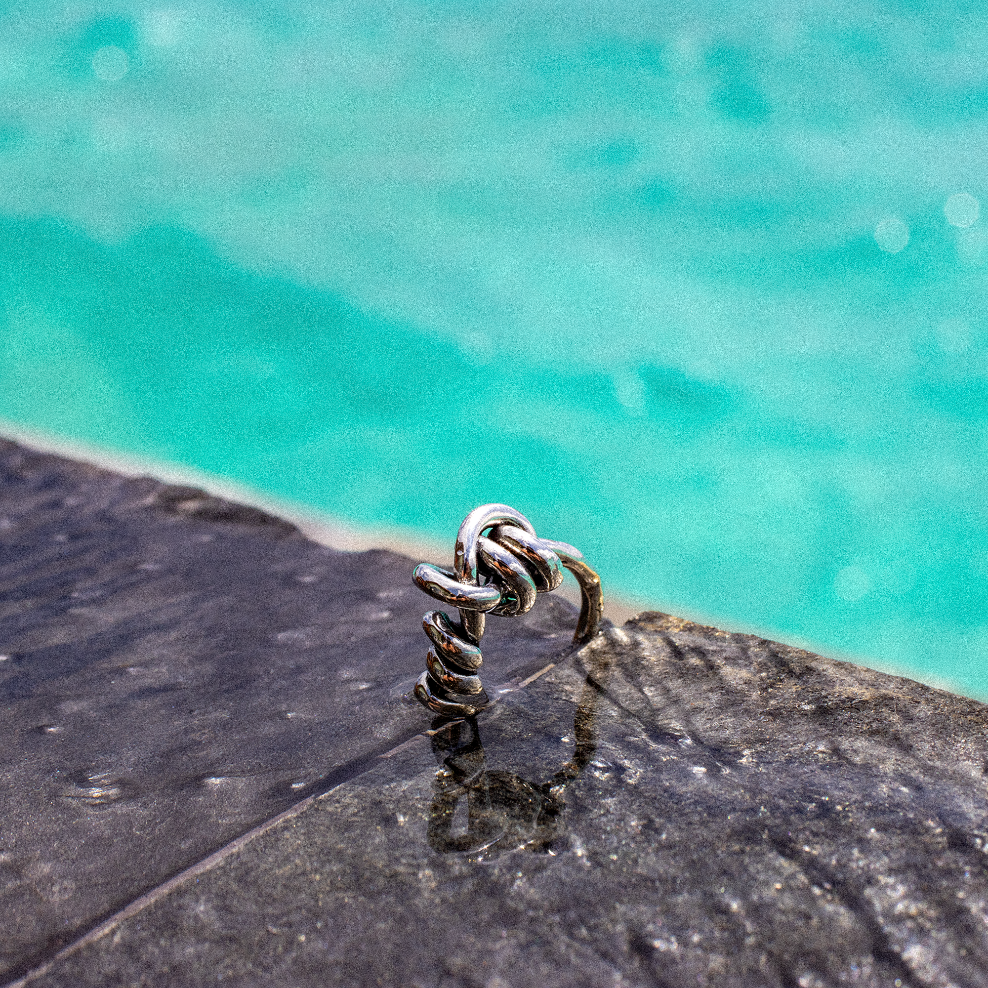 Tangled linescombine to form a sculptural piece of jewelery with that certain something