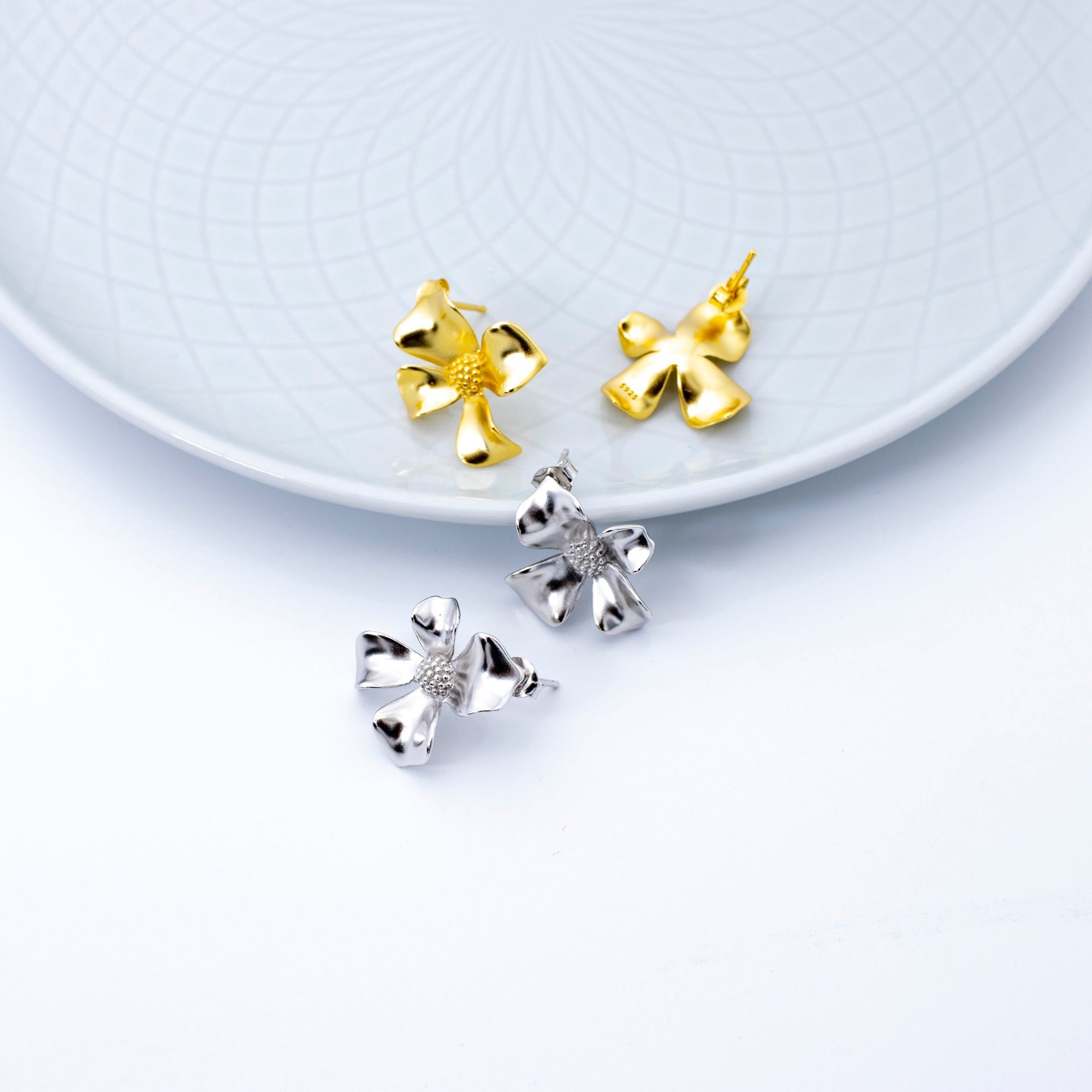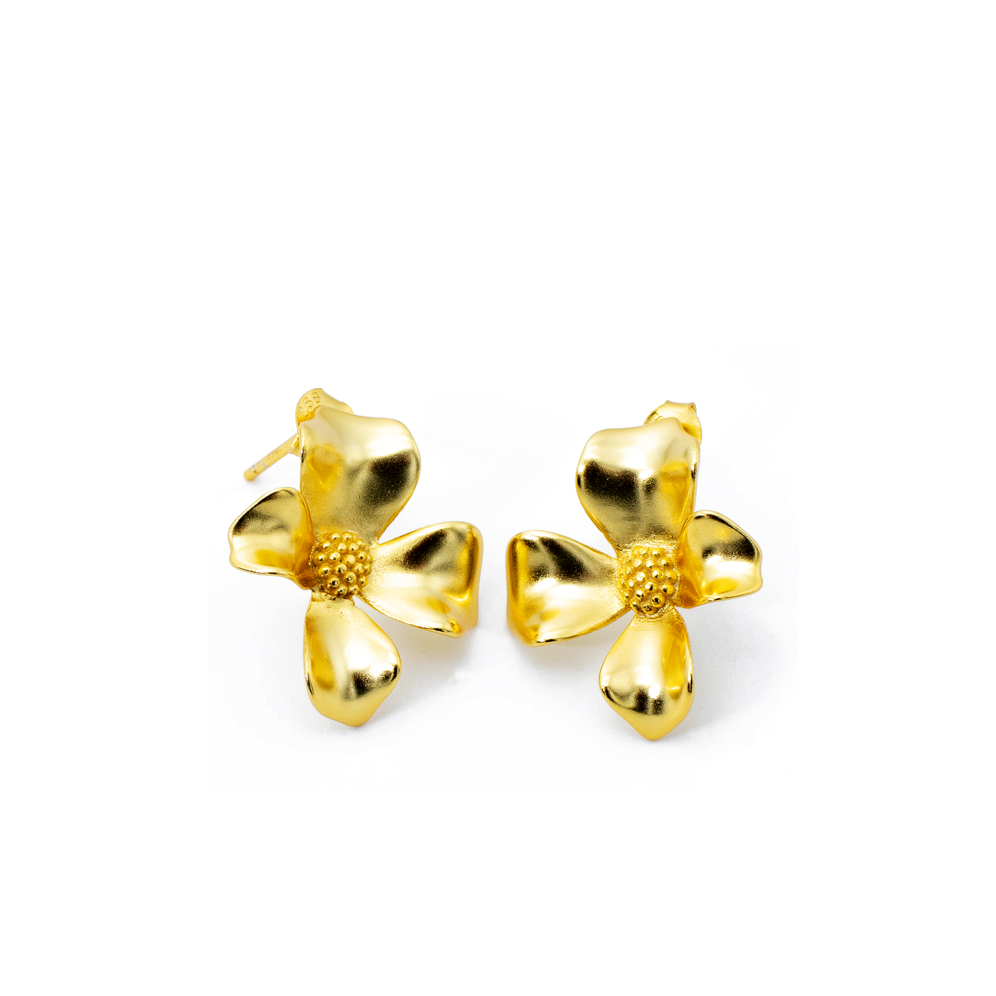 EUPHEME Large Floral Earrings-Ear Studs, Gold