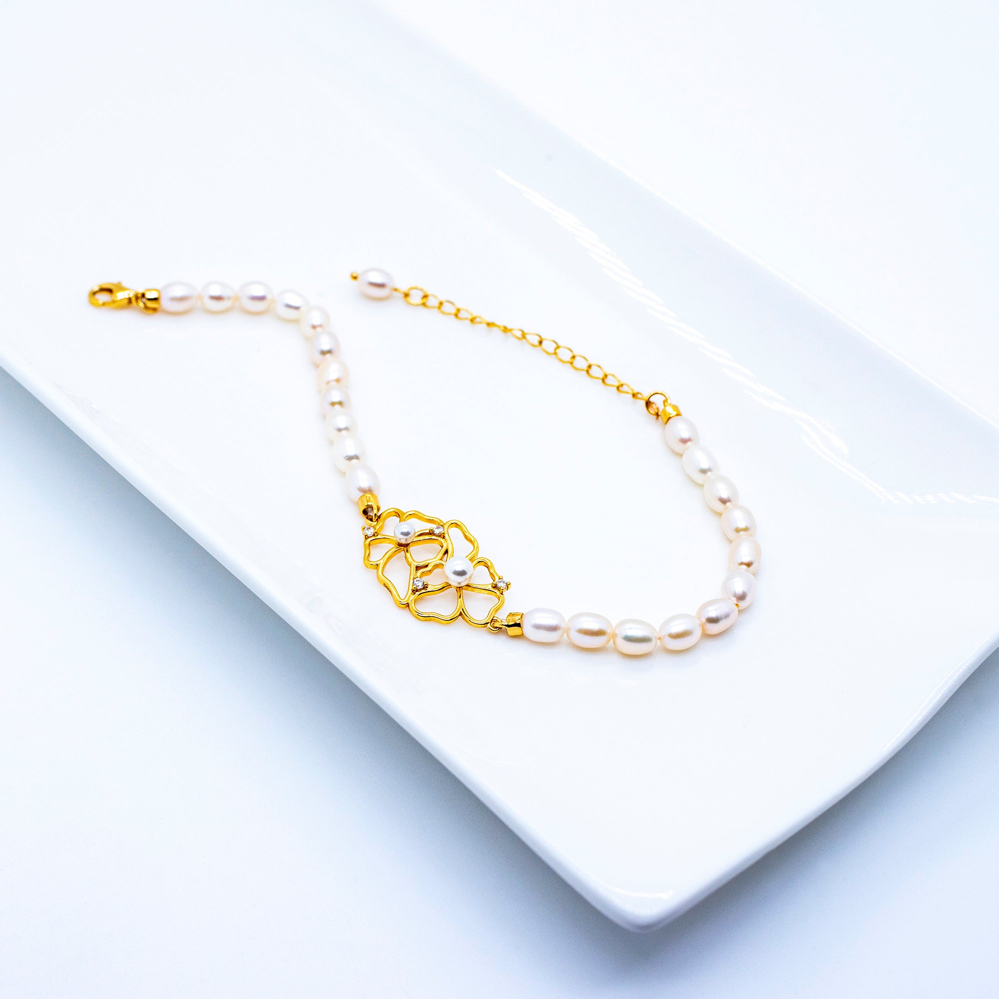 CHASE 925 Silver Baroque Pearl Bracelet with Flowers