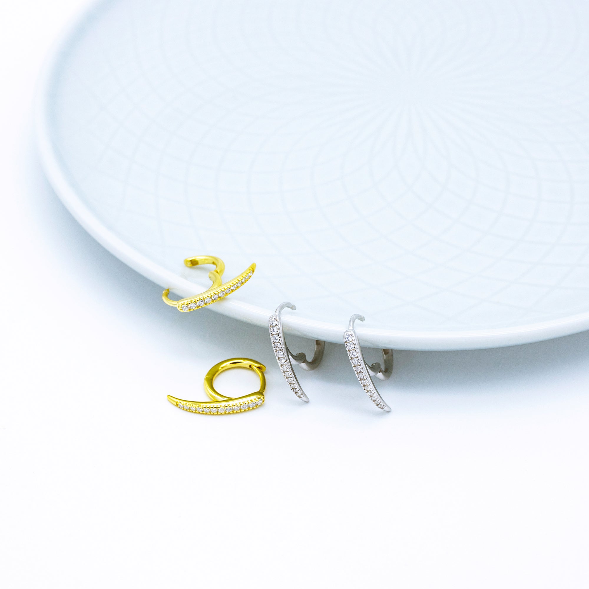 'Ethea' silver claw hoop earrings in sterling silver