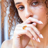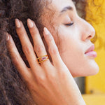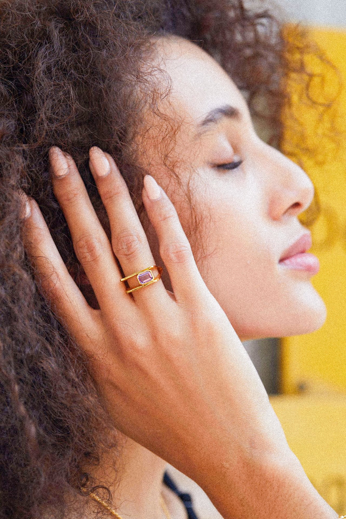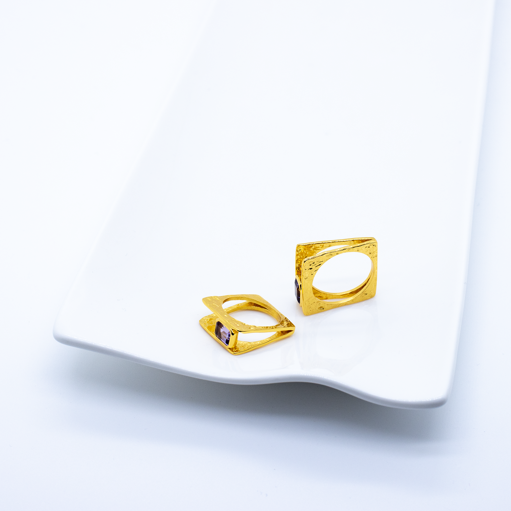 JULIET Square Gold Ring with Amethyst in Layered Look