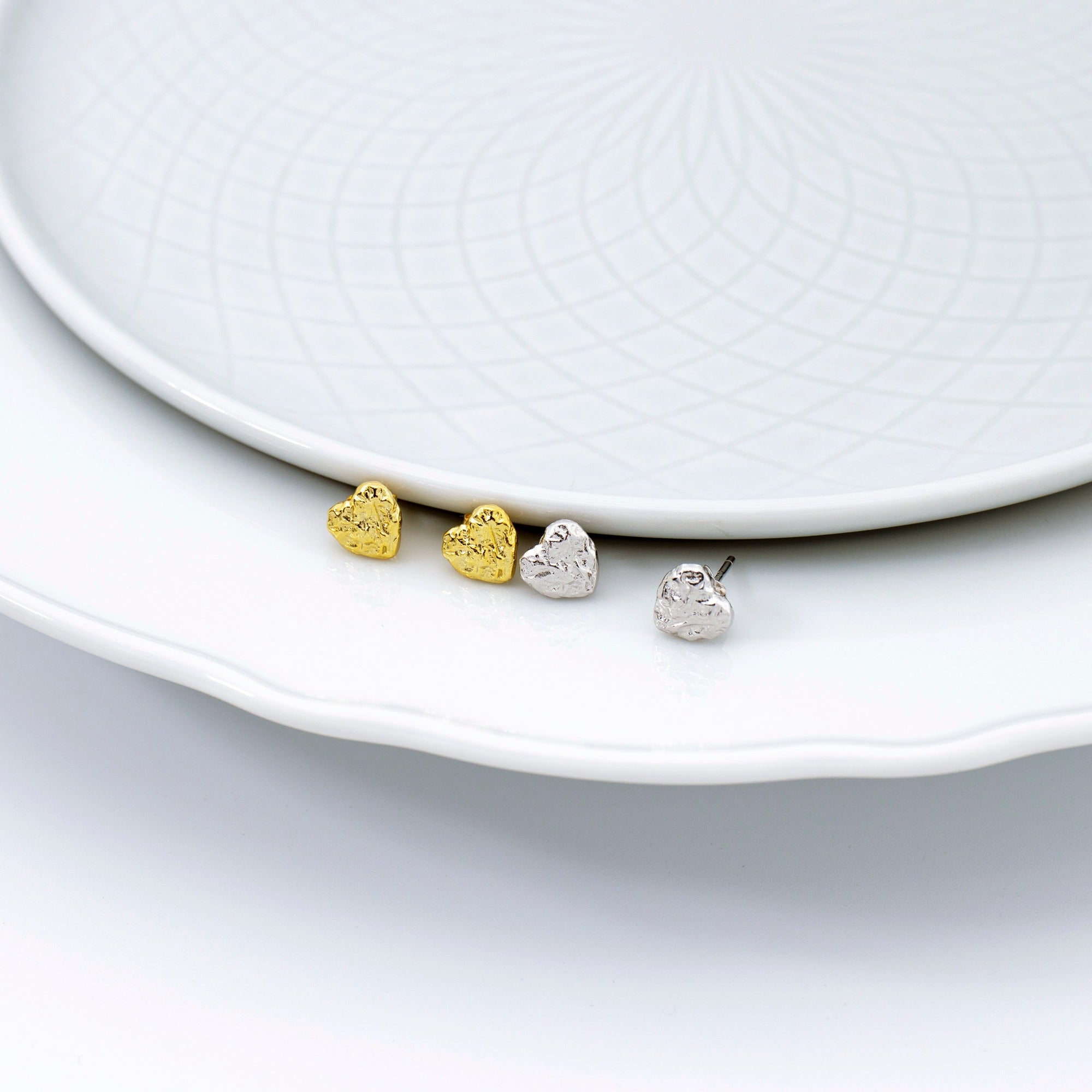 Unique earrings in a trendy design: These stud earrings are a one-of-a-kind piece of jewelry. With a vintage-inspired look and a textured, heart-shaped surface, they make a vibrant statement.