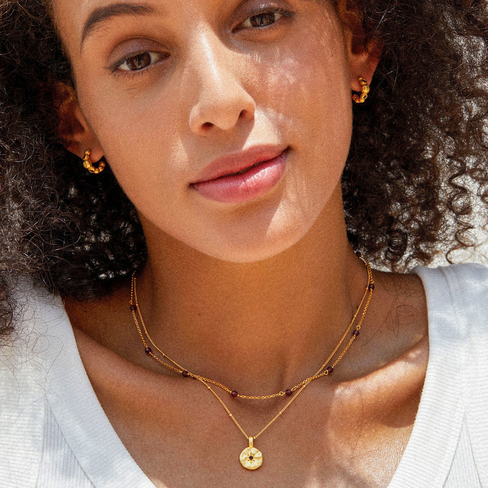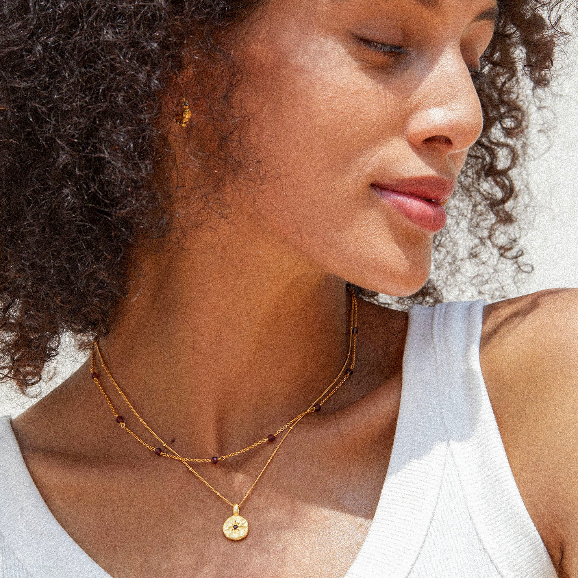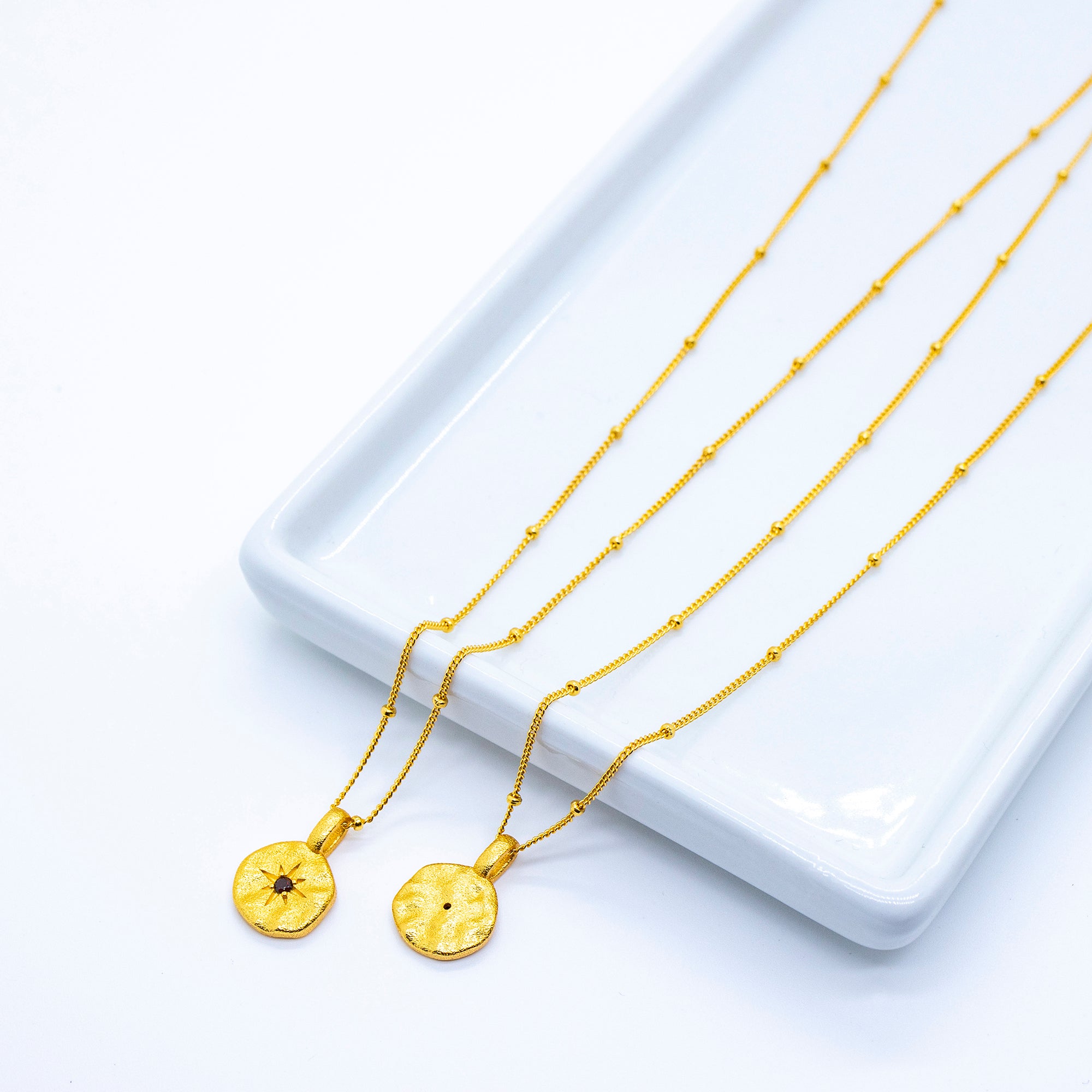 FANNY S925 fine gold chain with nugget pendant, garnet stone