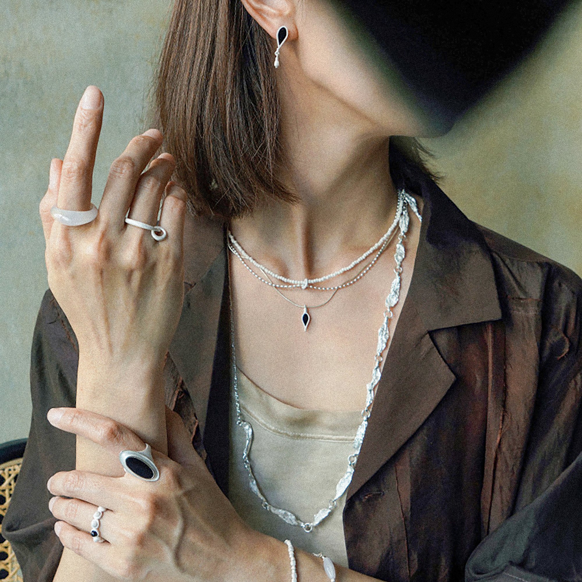 Its simple, classic design makes it versatile – whether for everyday wear, the office, or special occasions. It creates a particularly harmonious look when combined with a silver chain or a bracelet with a black accent.