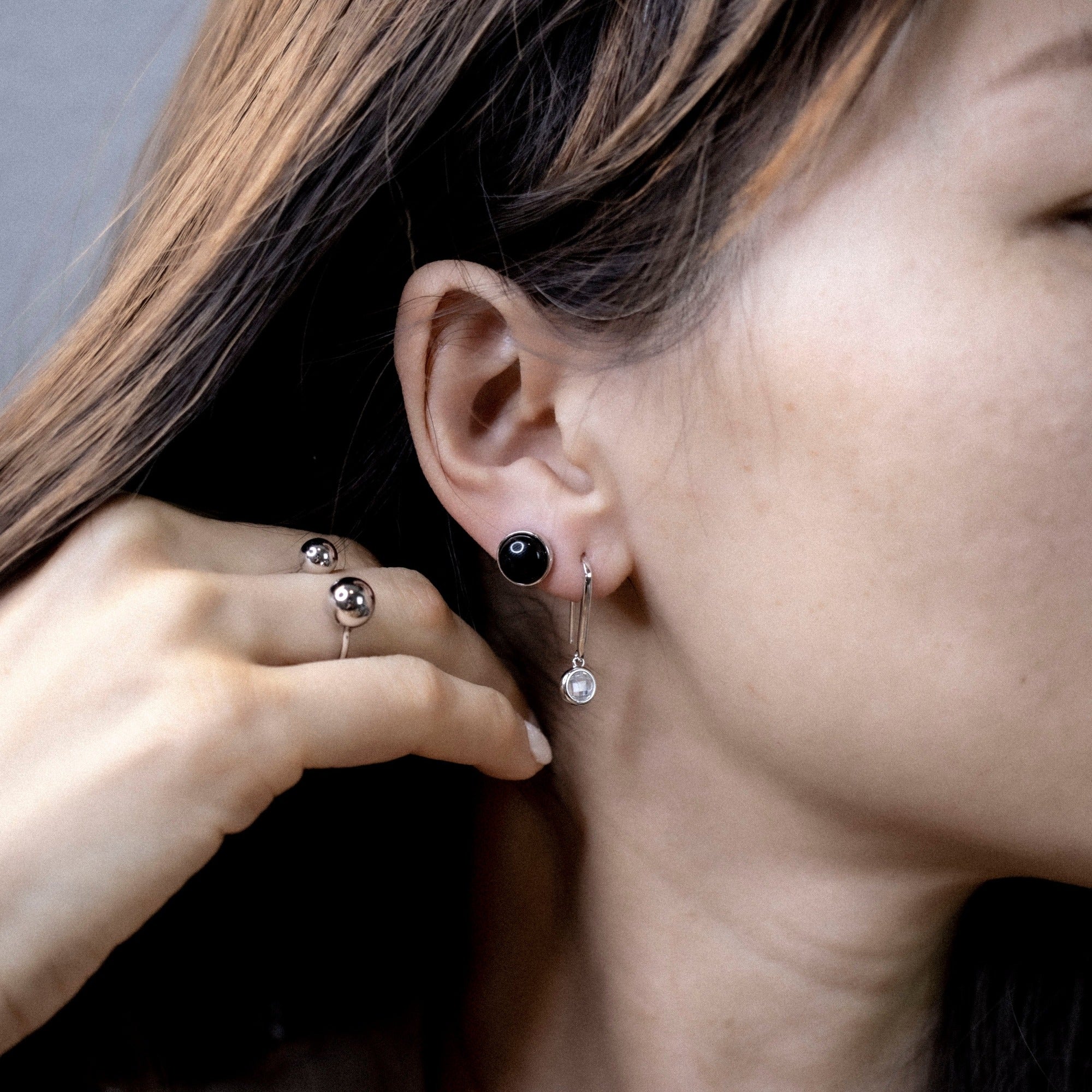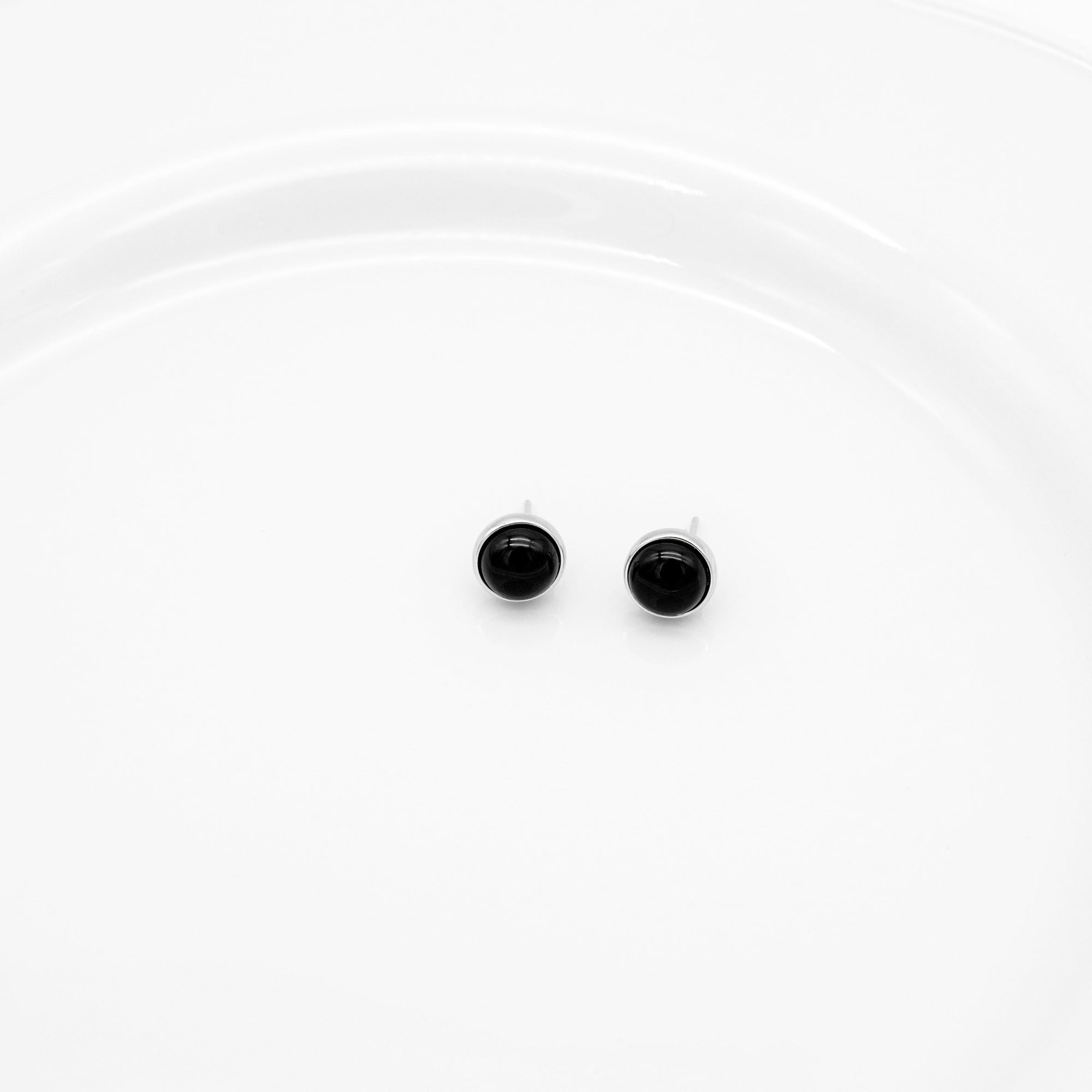SUCRE Round Stud Earrings with Black Agate - 925 Silver