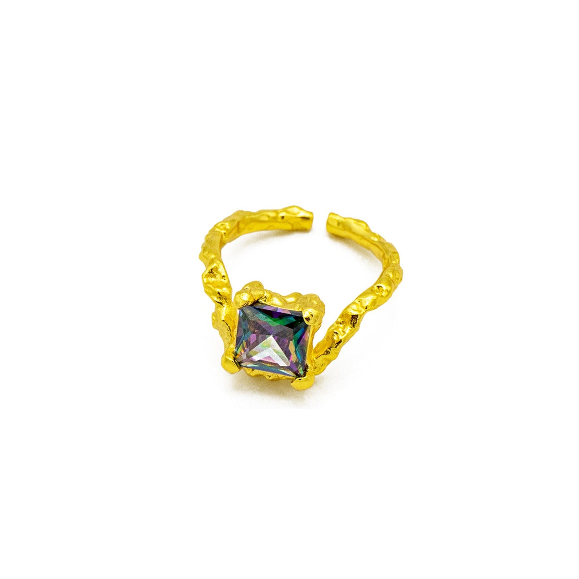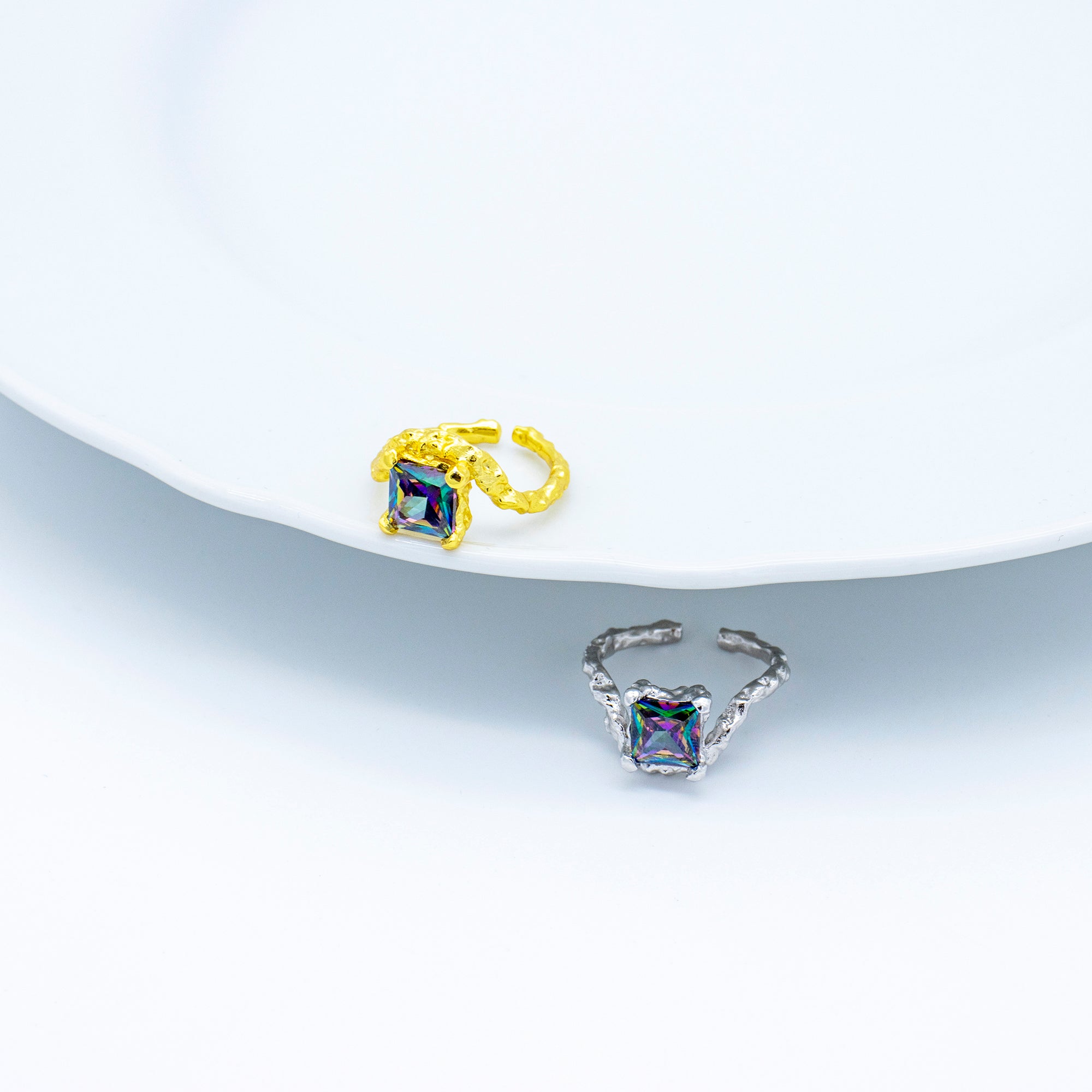 Experience luxurious elegance with this glittering ladies' ring made of 925 sterling silver. The ring head is accentuated with a square of intensely colored stone that sparkles beautifully in the light and complements a naturalistic ring structure. It will blend powerfully into your look as a stylish and expressive accessory.
