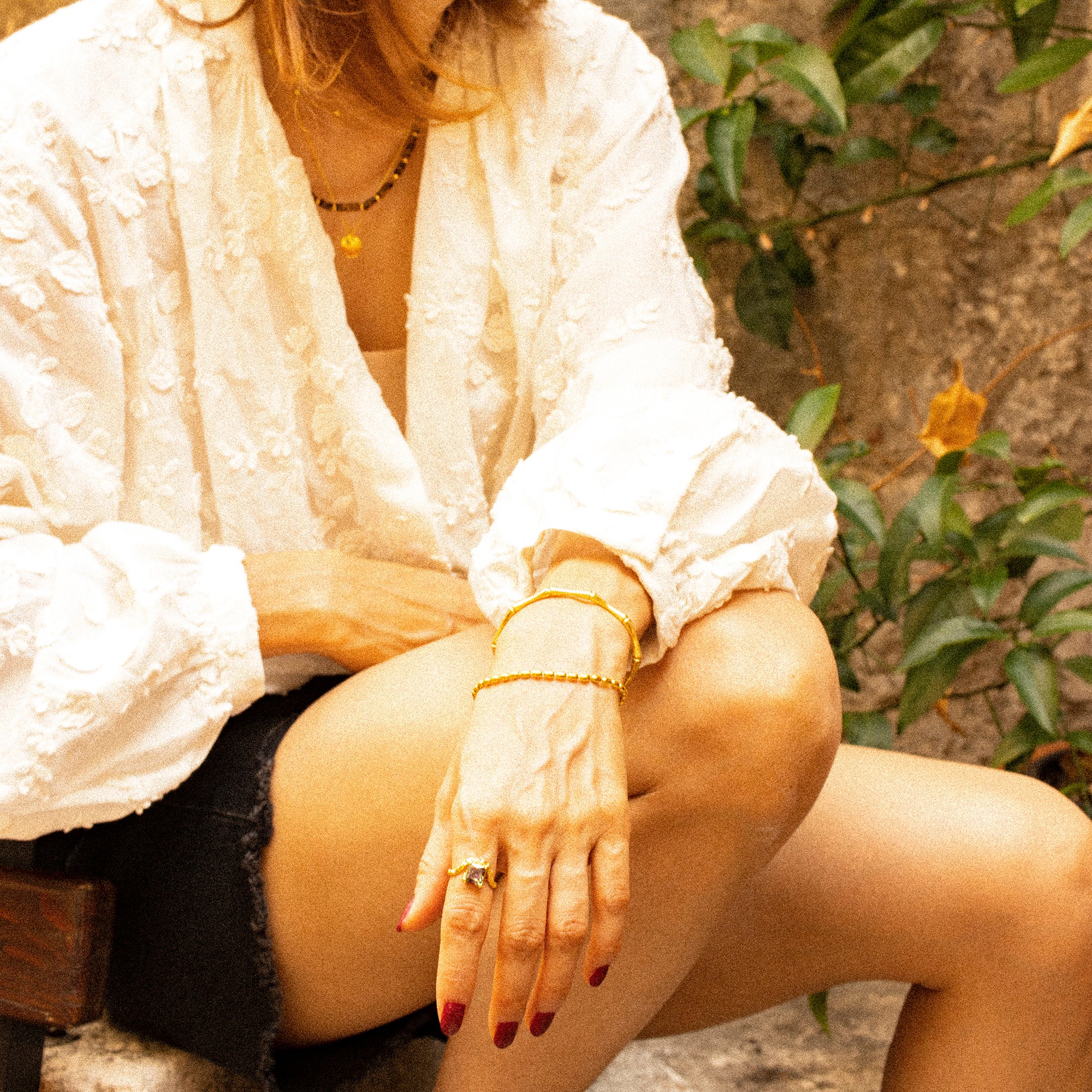 Made from high quality materials, our jewelry is water resistant and should not tarnish over time. Do not expose the jewelry to sweat, water, perfumes, alcohol or other substances to ensure that the gold plating is not damaged. Because our jewelry is plated with real gold, it too will oxidize over time. We recommend cleaning all jewelry with bicarbonate buffer every 6 months for maximum shine. With the right treatment and care, your little treasures can stay beautiful for a long time and your jewelry will always look like new.