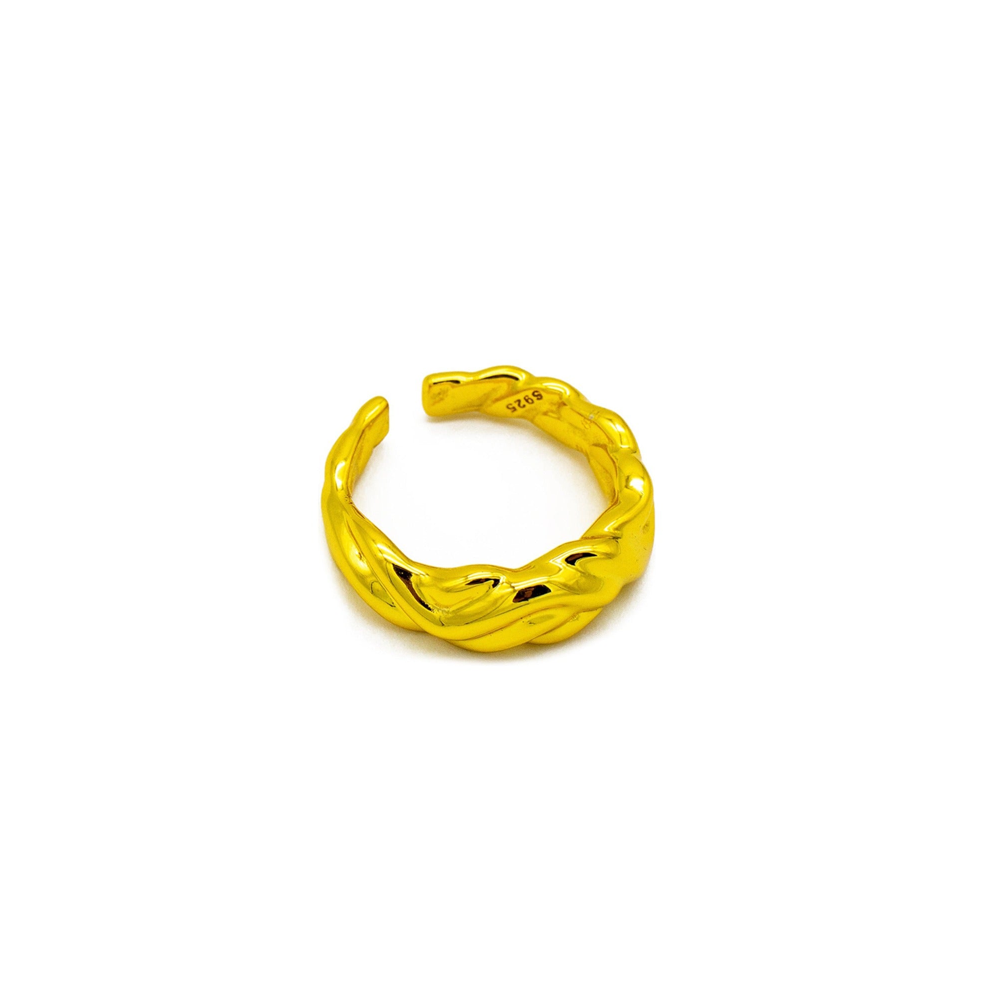 VOKOUMA gold ring with wavy structure made of 925 sterling silver