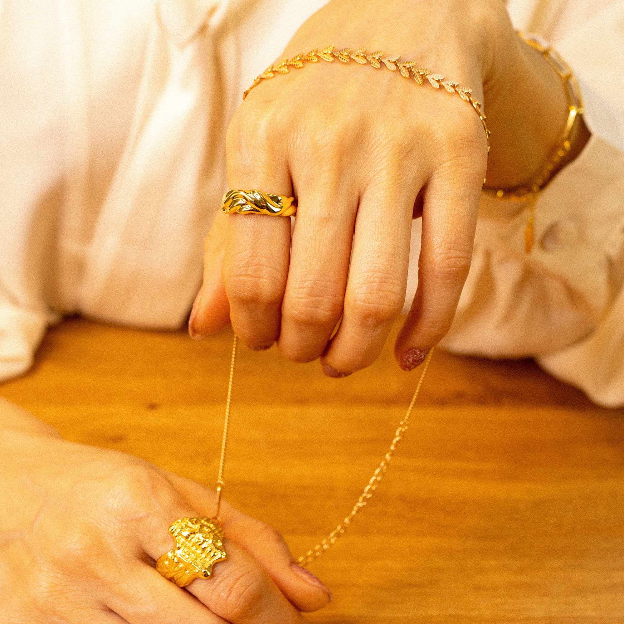 This stylish women's ring exudes delicate elegance with its textured design. The wave pattern gracefully wraps around the finger, its exquisite detail sure to catch the eye. The adjustable band ensures a comfortable fit and a perfect fit.