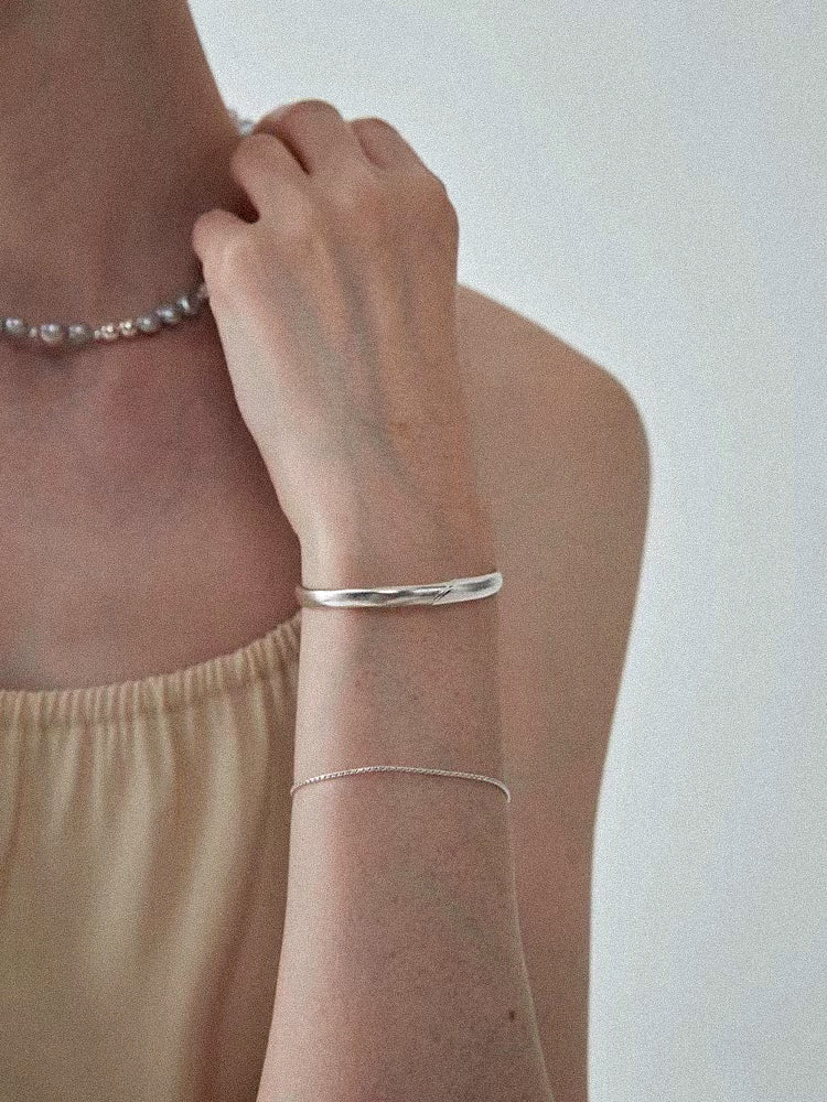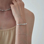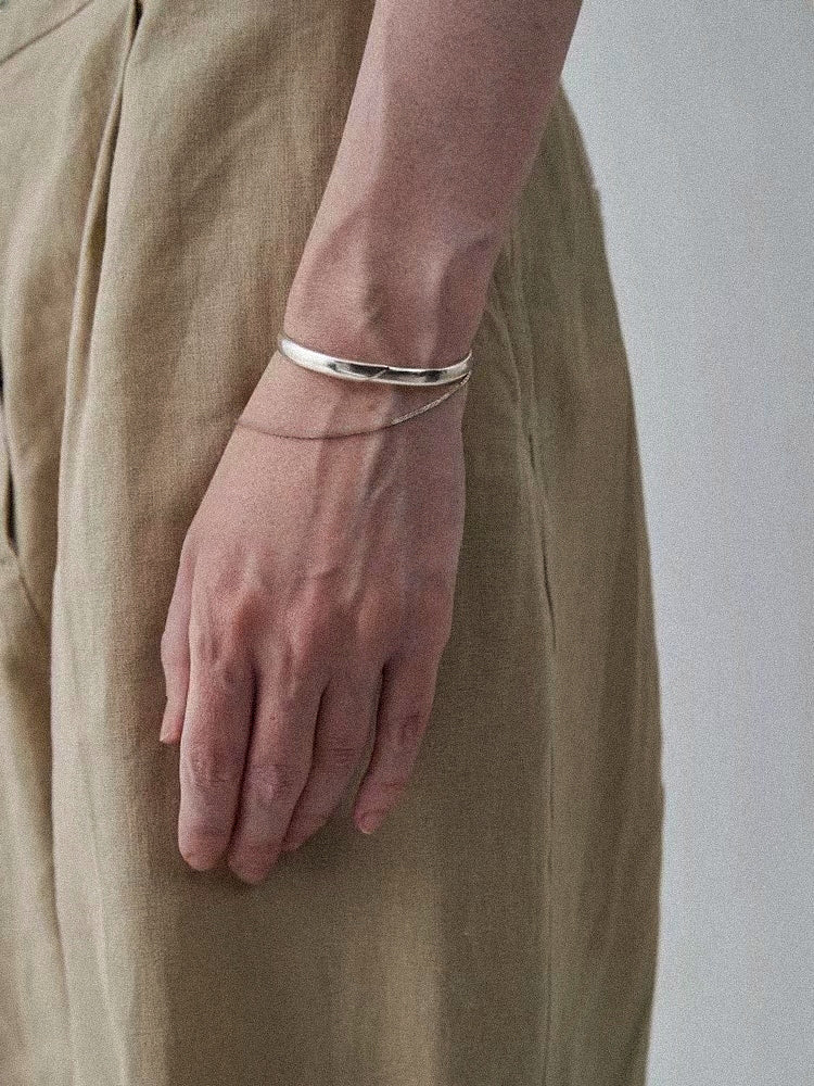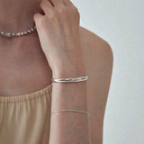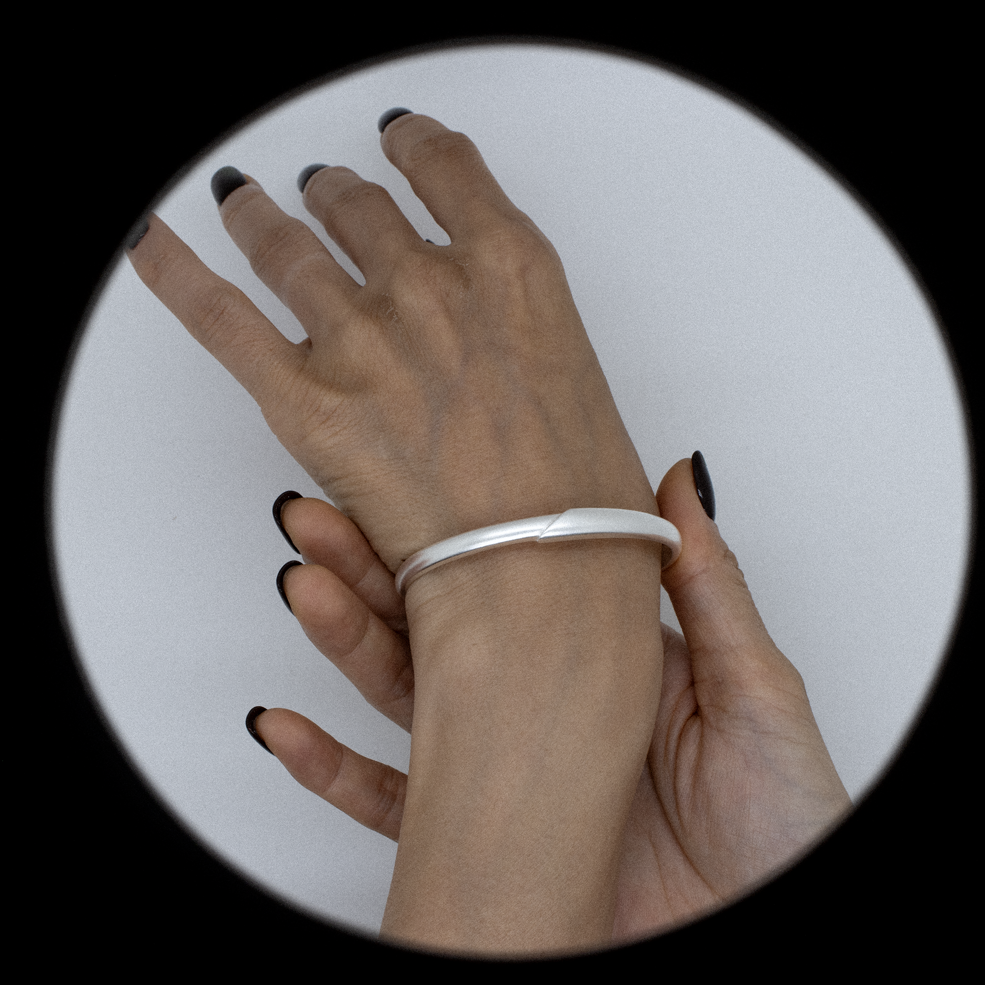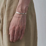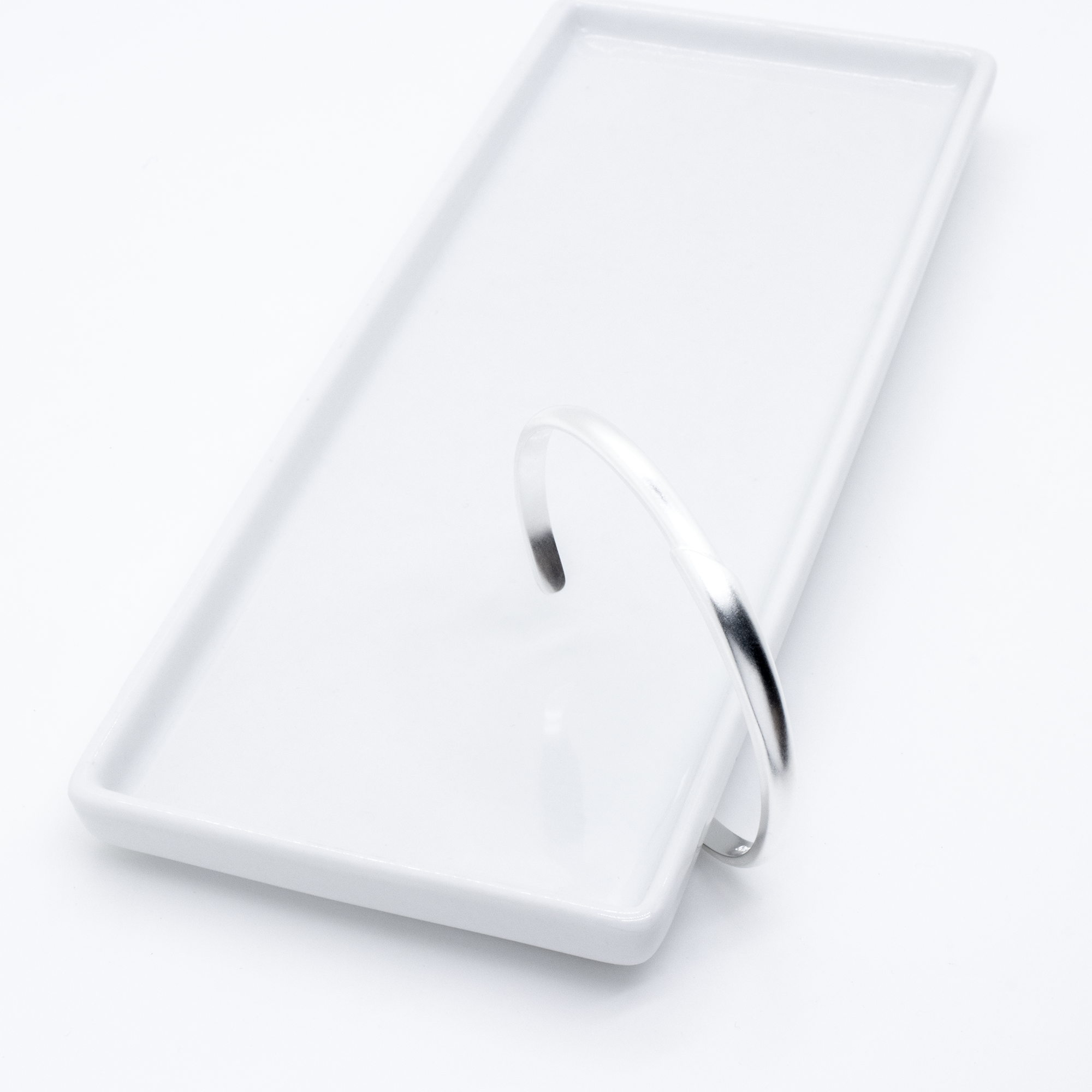 Ce bracelet pour femme en argent sterling mat incarne une élégance intemporelle. Sa forme ronde et simple est sublimée par une surface légèrement incurvée, lui conférant une profondeur subtile. La finition mate met en valeur la beauté naturelle de l'argent, créant un style à la fois discret et saisissant.
