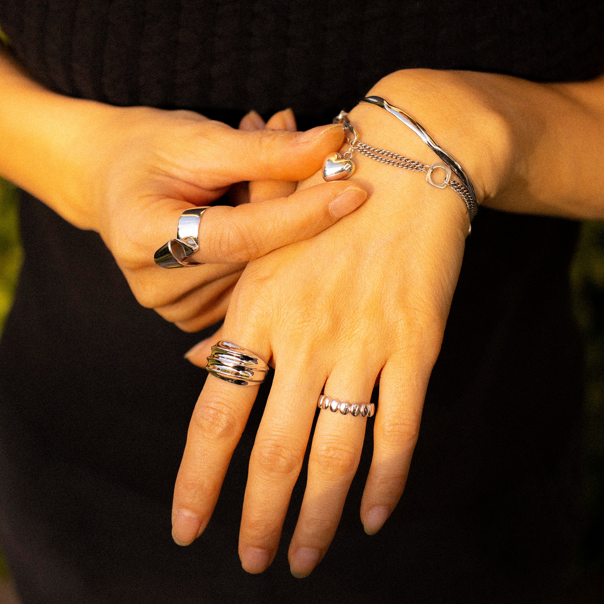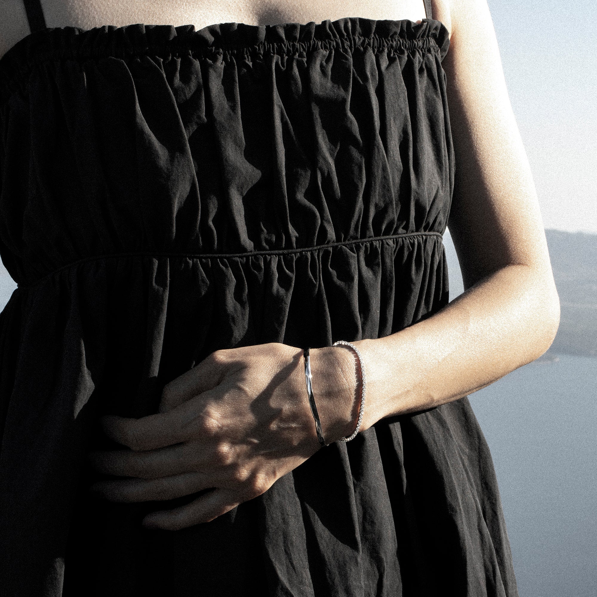 Fabriqué en argent sterling 925 et doté d'une surface argentée séduisante et brillante, le bracelet se présente comme un point fort d'une élégance luxueuse. Sa silhouette élancée et son style épuré en font un accessoire irrésistible pour toutes les tenues.