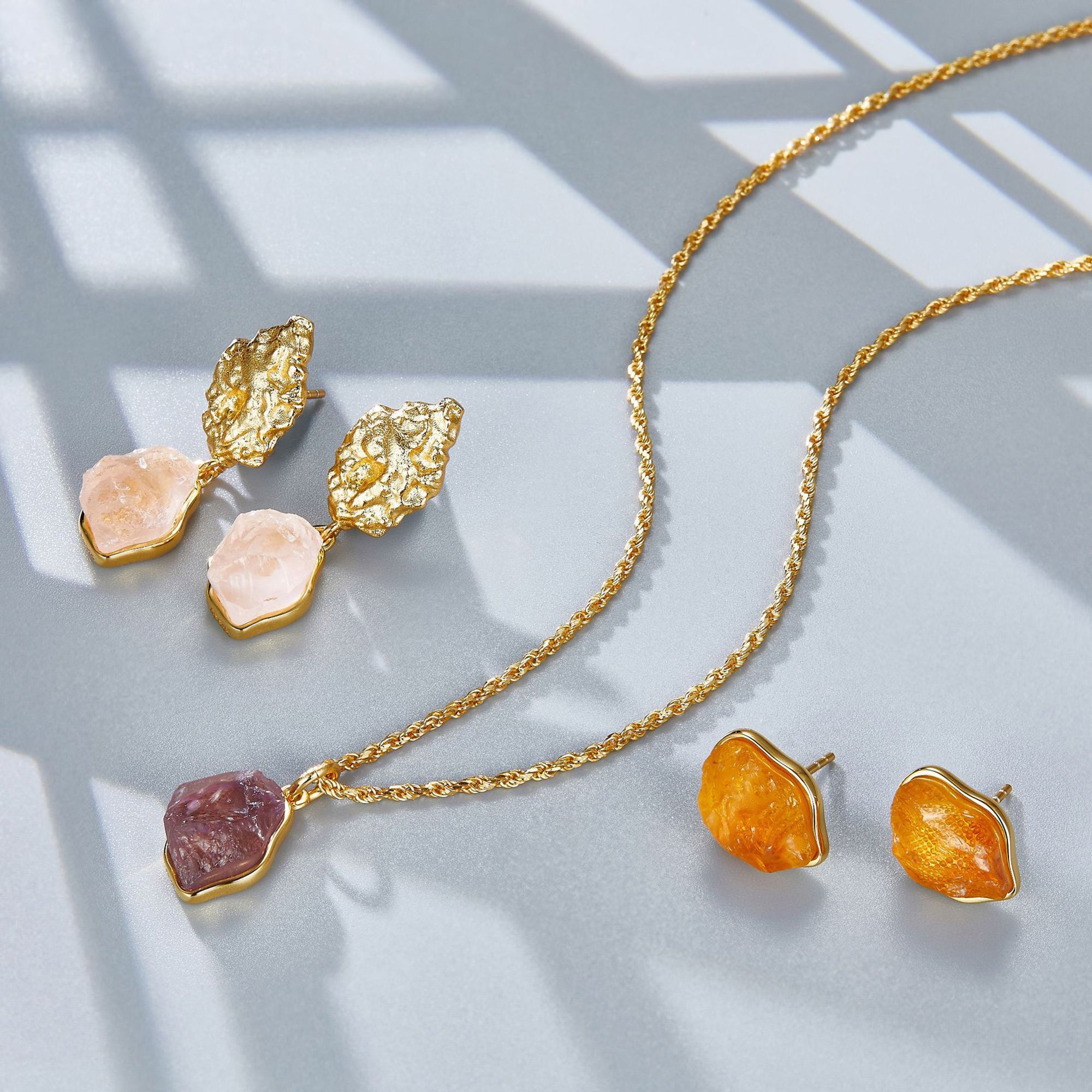 Ce collier et ce bracelet élégants sont constitués d'éclats brillants finement coupés et polis. Chaque face du bijou est unique et reflète la lumière pour créer un aspect étincelant. Portez-le seul ou superposez-le avec d'autres pour un look moderne. Absolument une pièce incontournable !