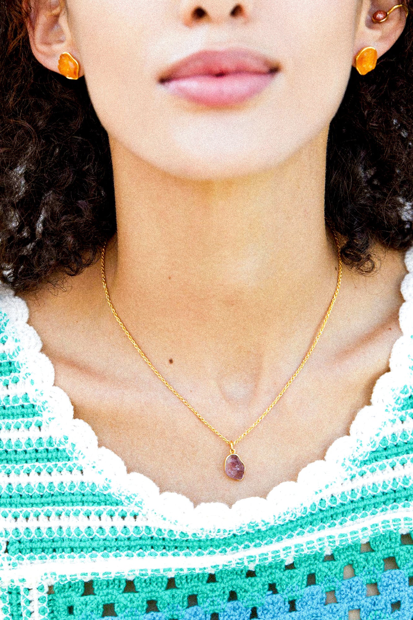 Découvrez le charme naturel de cet élégant collier pour femme. Ce magnifique collier est orné d'un pendentif en améthyste unique qui scintille et enchante au soleil. Un bijou de nature qui sublime votre beauté. Parfait pour la femme moderne qui apprécie l'exceptionnel.