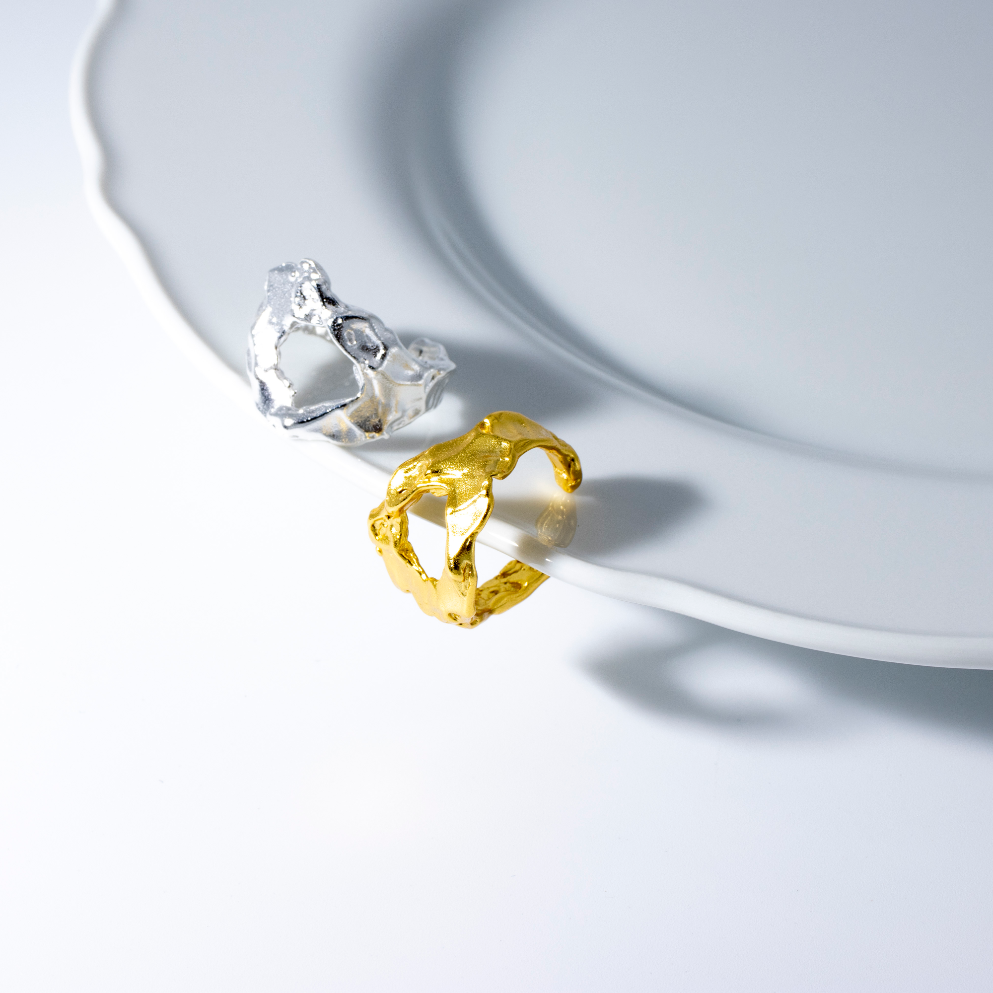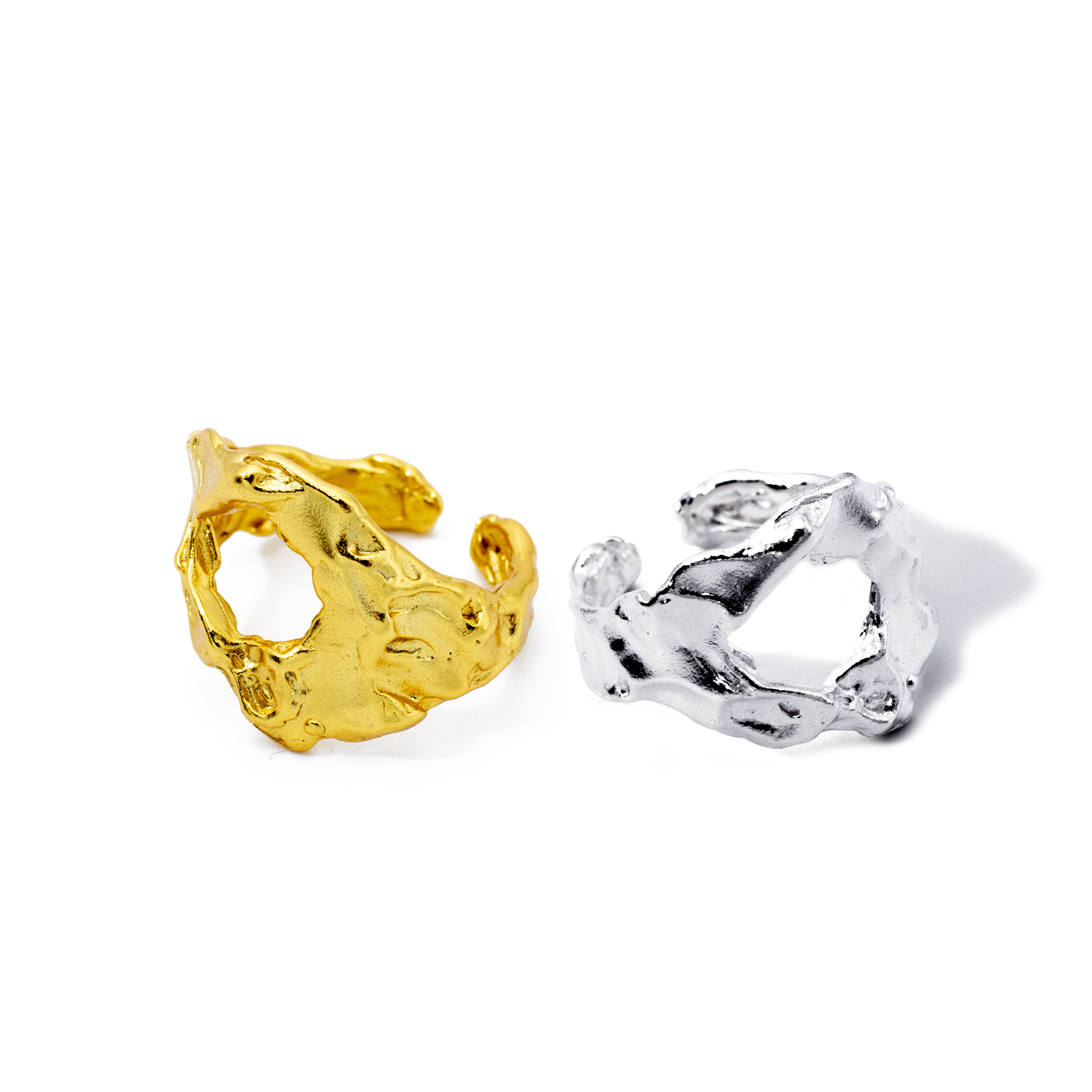 Bague hipster MEROY en argent avec trou, métal en fusion