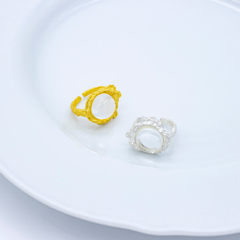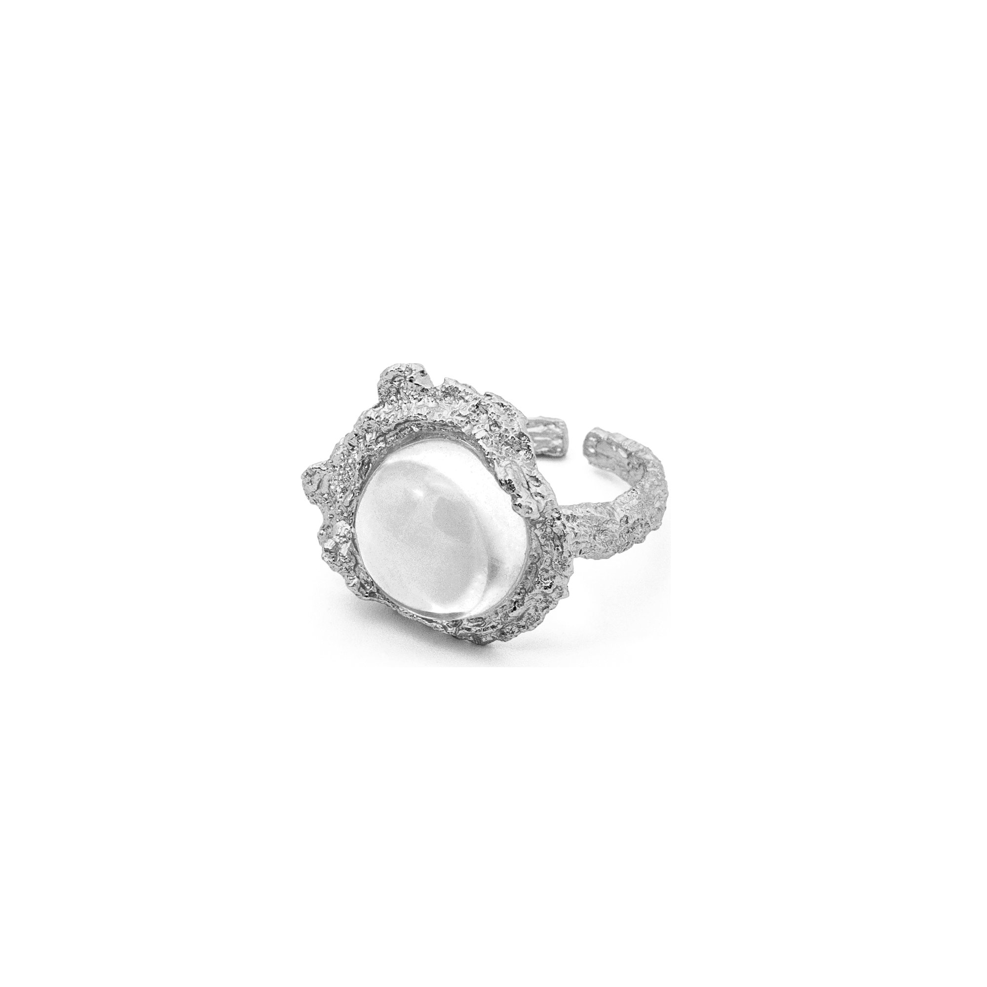 NIOKI Bague élégante en argent avec cristal sphérique, naturaliste