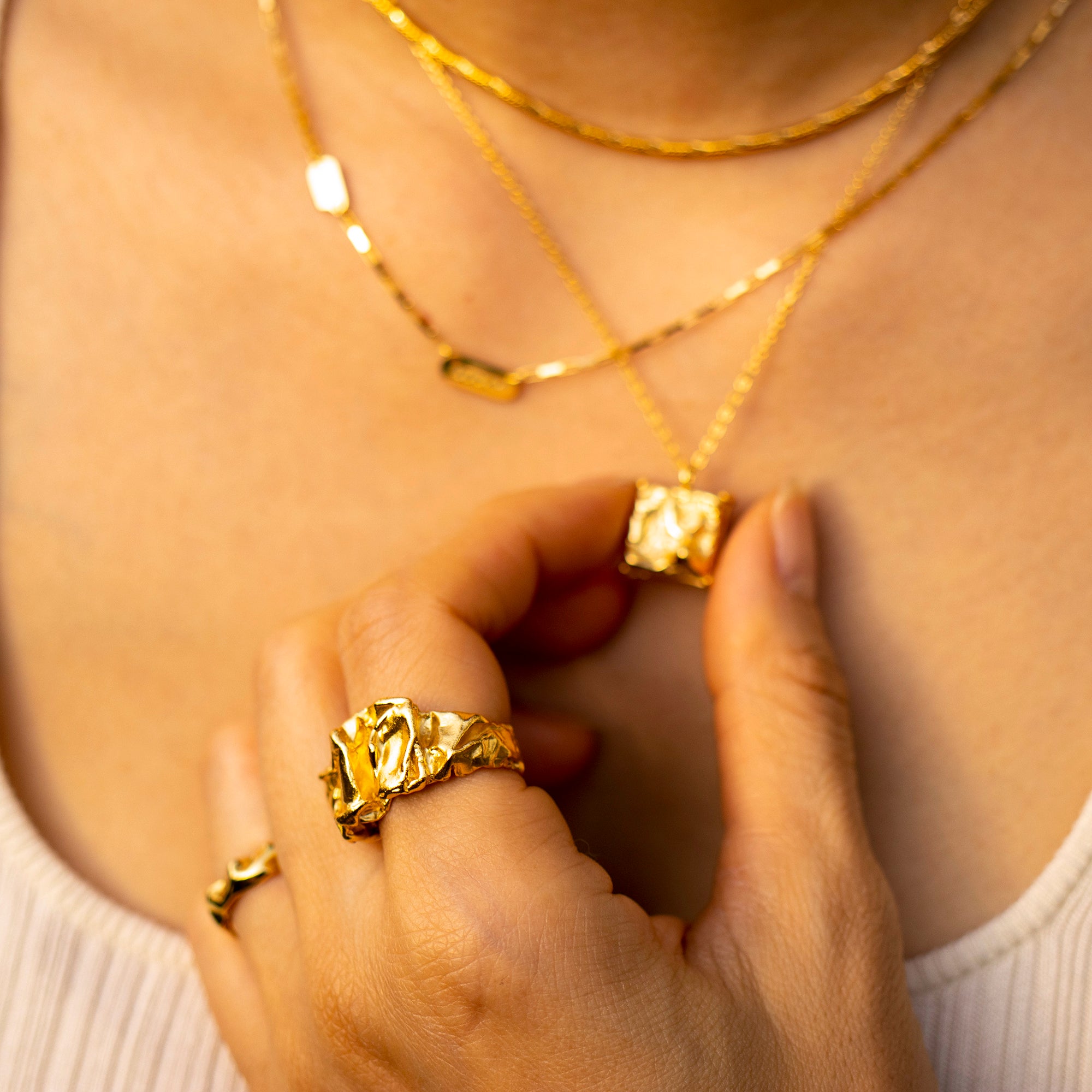 Fabriqués à partir de matériaux de haute qualité, nos bijoux sont résistants à l'eau et ne doivent pas ternir avec le temps. N'exposez pas les bijoux à la sueur, à l'eau, aux parfums, à l'alcool ou à d'autres substances pour vous assurer que le placage d'or n'est pas endommagé. Parce que nos bijoux sont plaqués d'or véritable, ils s'oxyderont également avec le temps. Nous recommandons de nettoyer tous les bijoux avec un tampon au bicarbonate tous les 6 mois pour un maximum de brillance. Avec le traitement et les soins appropriés, vos petits trésors peuvent rester beaux pendant longtemps et vos bijoux auront toujours l'air neufs.