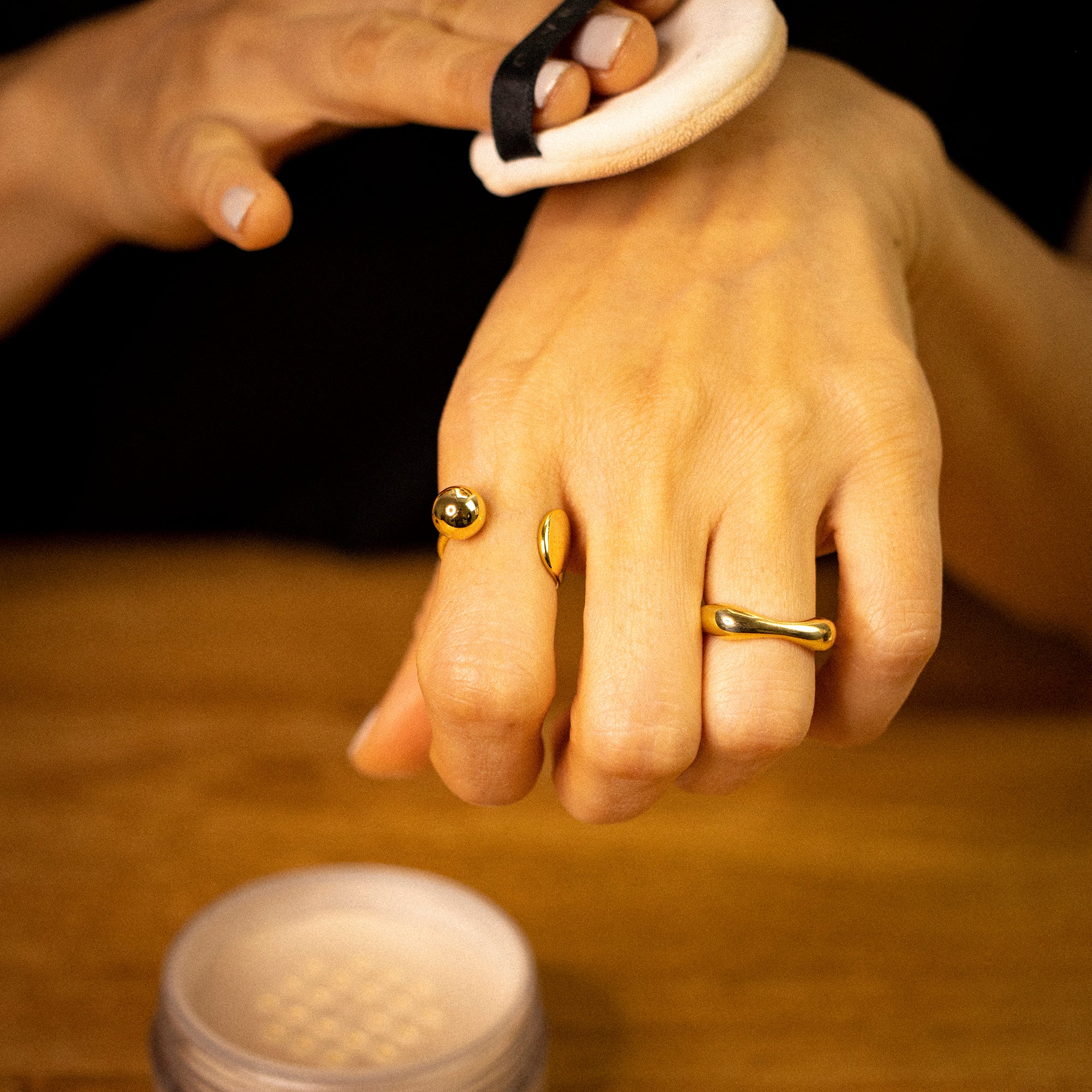 Fabriqués à partir de matériaux de haute qualité, nos bijoux sont résistants à l'eau et ne doivent pas ternir avec le temps. N'exposez pas les bijoux à la sueur, à l'eau, aux parfums, à l'alcool ou à d'autres substances pour vous assurer que le placage d'or n'est pas endommagé. Parce que nos bijoux sont plaqués d'or véritable, ils s'oxyderont également avec le temps. Nous recommandons de nettoyer tous les bijoux avec un tampon au bicarbonate tous les 6 mois pour un maximum de brillance. Avec le traitement et les soins appropriés, vos petits trésors peuvent rester beaux pendant longtemps et vos bijoux auront toujours l'air neufs.
