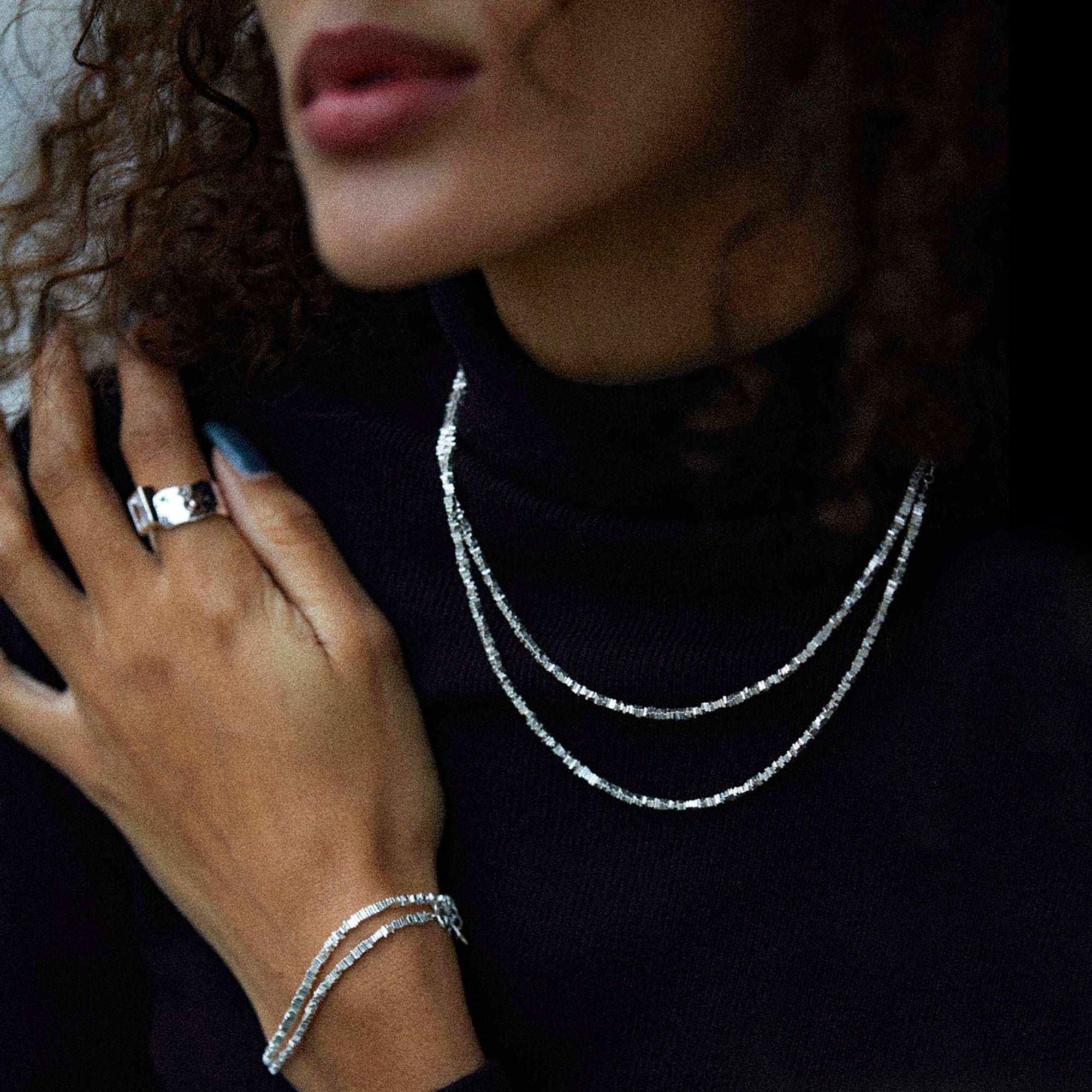 Des pierres de zircon étincelantes, de l'argent 925 élégant et un plaquage or fin font de chaque pièce un bijou d'exception – parfait pour les fêtes, les dîners ou tout simplement lorsque vous avez envie d'un peu d'éclat.