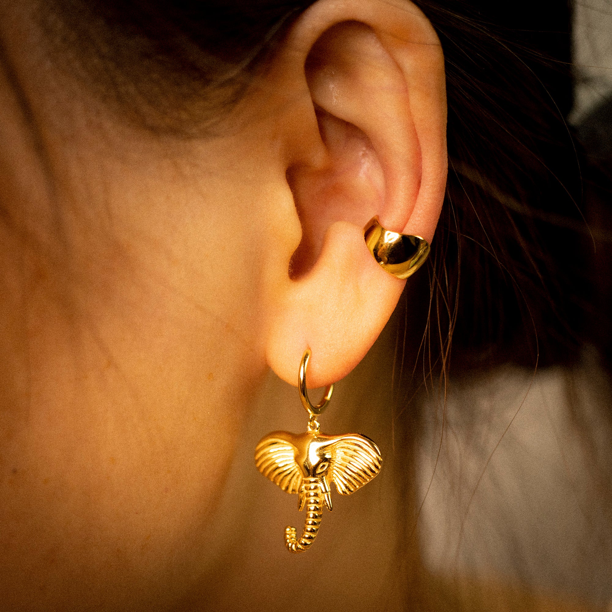 Ces boucles d'oreilles dorées séduisent par leur pendentif éléphant finement ciselé, réalisé en argent sterling 925 de haute qualité. L'éléphant est considéré comme un symbole de force, de chance et de sagesse, faisant de ces créoles un bijou véritablement exceptionnel.