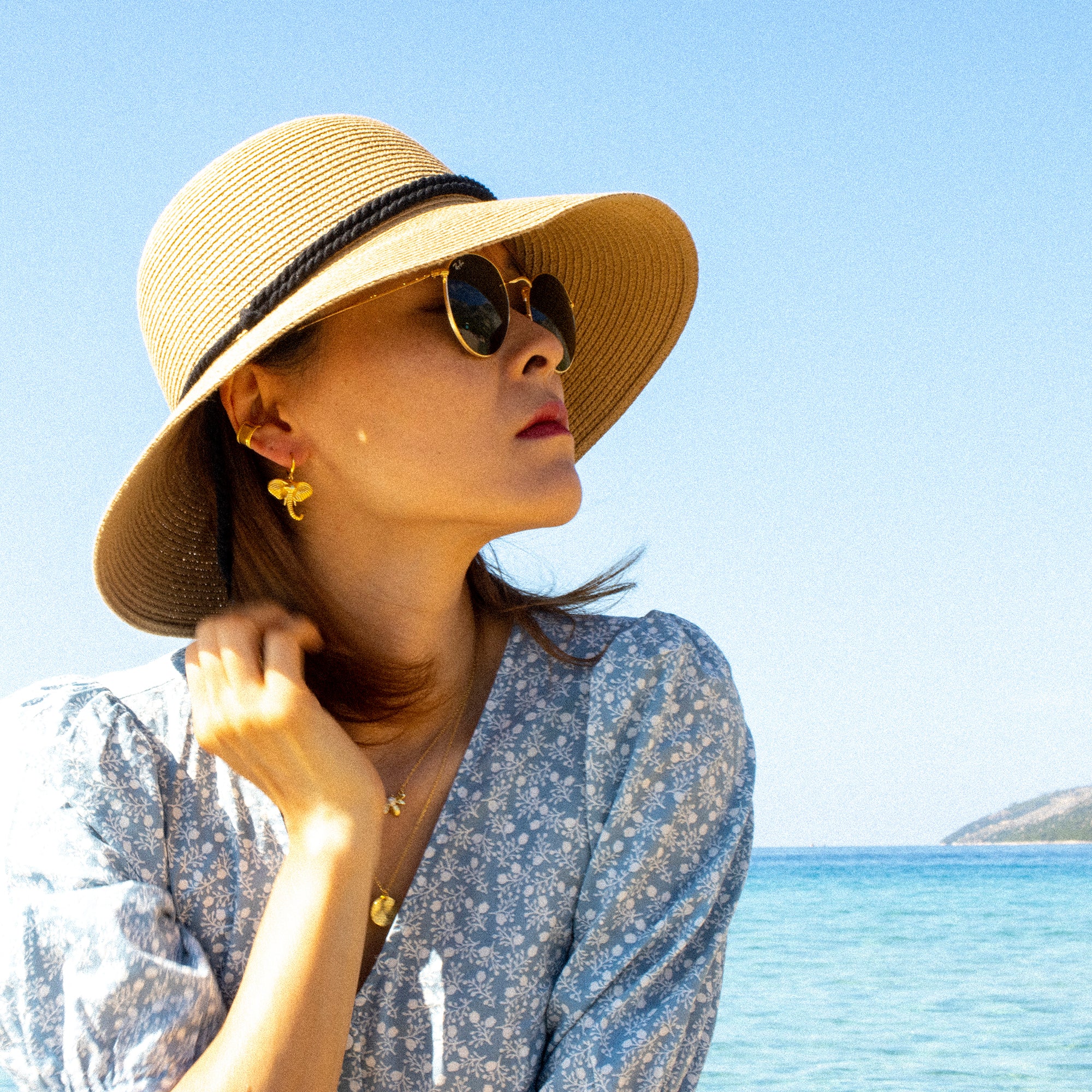 Fabriqués à partir de matériaux de haute qualité, nos bijoux sont résistants à l'eau et ne doivent pas ternir avec le temps. N'exposez pas les bijoux à la sueur, à l'eau, aux parfums, à l'alcool ou à d'autres substances pour vous assurer que le placage d'or n'est pas endommagé. Parce que nos bijoux sont plaqués d'or véritable, ils s'oxyderont également avec le temps. Nous recommandons de nettoyer tous les bijoux avec un tampon au bicarbonate tous les 6 mois pour un maximum de brillance. Avec le traitement et les soins appropriés, vos petits trésors peuvent rester beaux pendant longtemps et vos bijoux auront toujours l'air neufs.