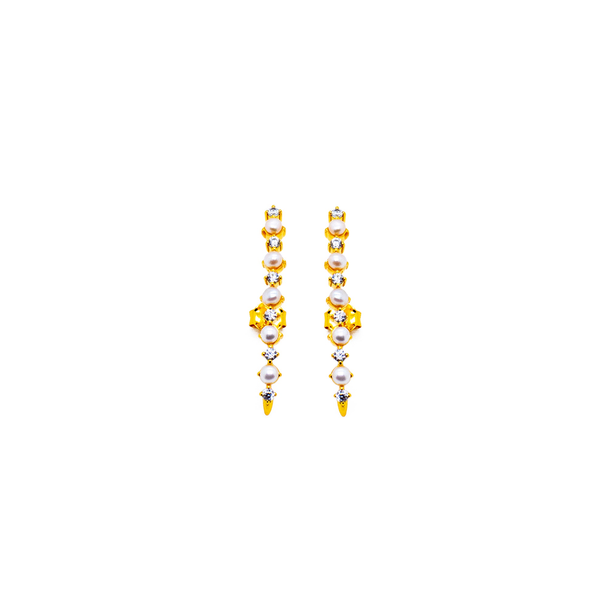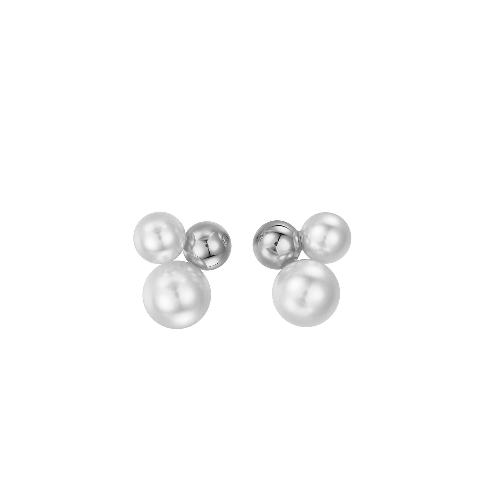 Ces élégantes boucles d'oreilles puces associent trois sphères en or brillant à des perles scintillantes, créant un mélange harmonieux de styles moderne et classique. Confectionnées en argent sterling 925 plaqué or de haute qualité, elles attirent tous les regards. Son aspect saisissant est obtenu grâce au jeu expressif de matériaux contrastés et au langage sculptural du design.